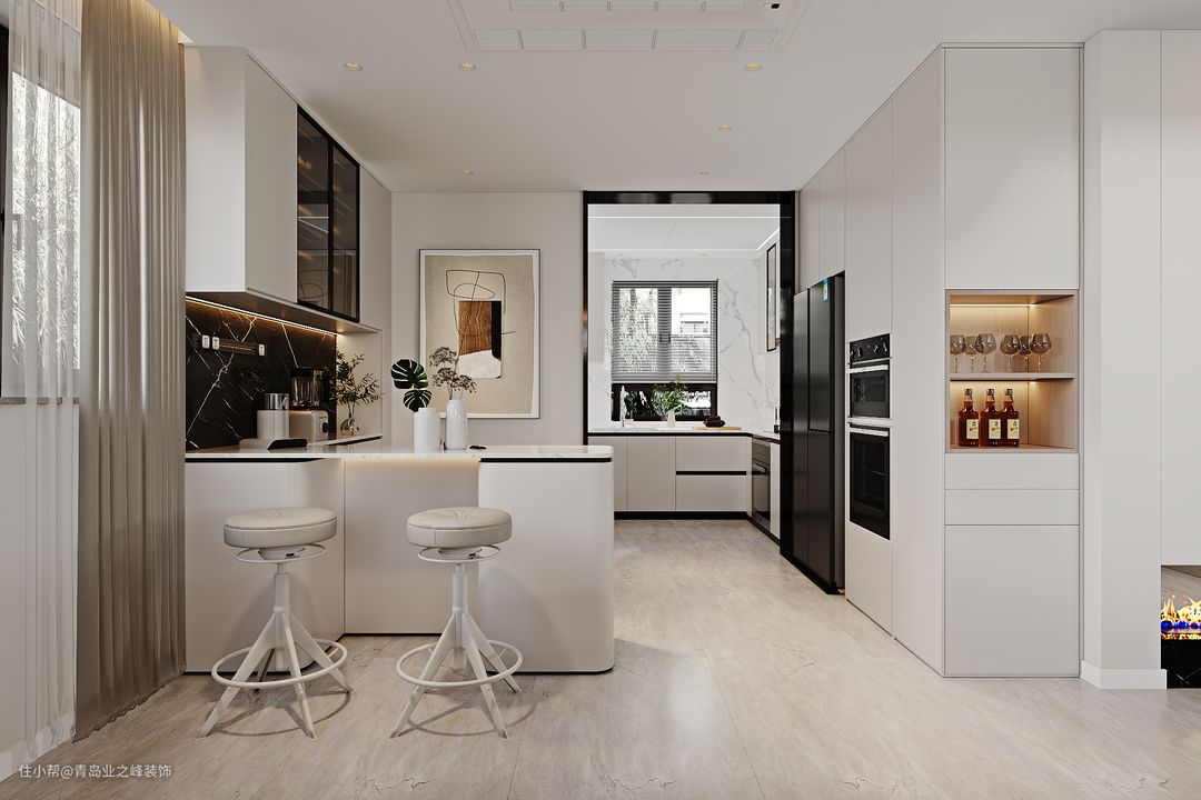 厨房采用开放式设计,内置式的电器最大限度地节省空间,打造充满极简主义的吧台,在这里感受艺术之美,感悟生活之味,一日三餐,一年四季。