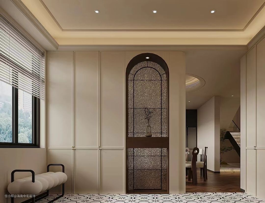 设置法式风格的鞋柜和挂画,既实用又美观。