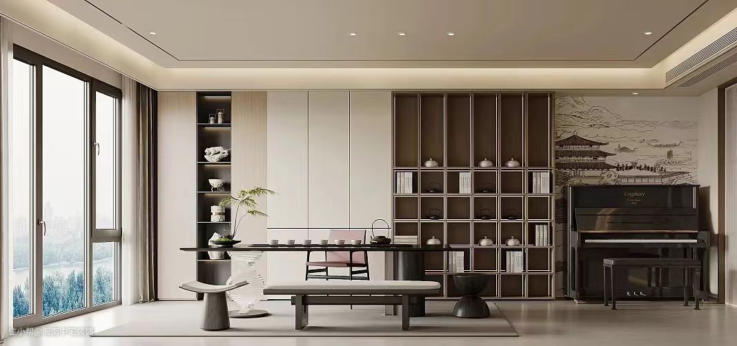 整墙书柜:通过定制整墙书柜来最大化储物空间,并保持空间的整洁有序。