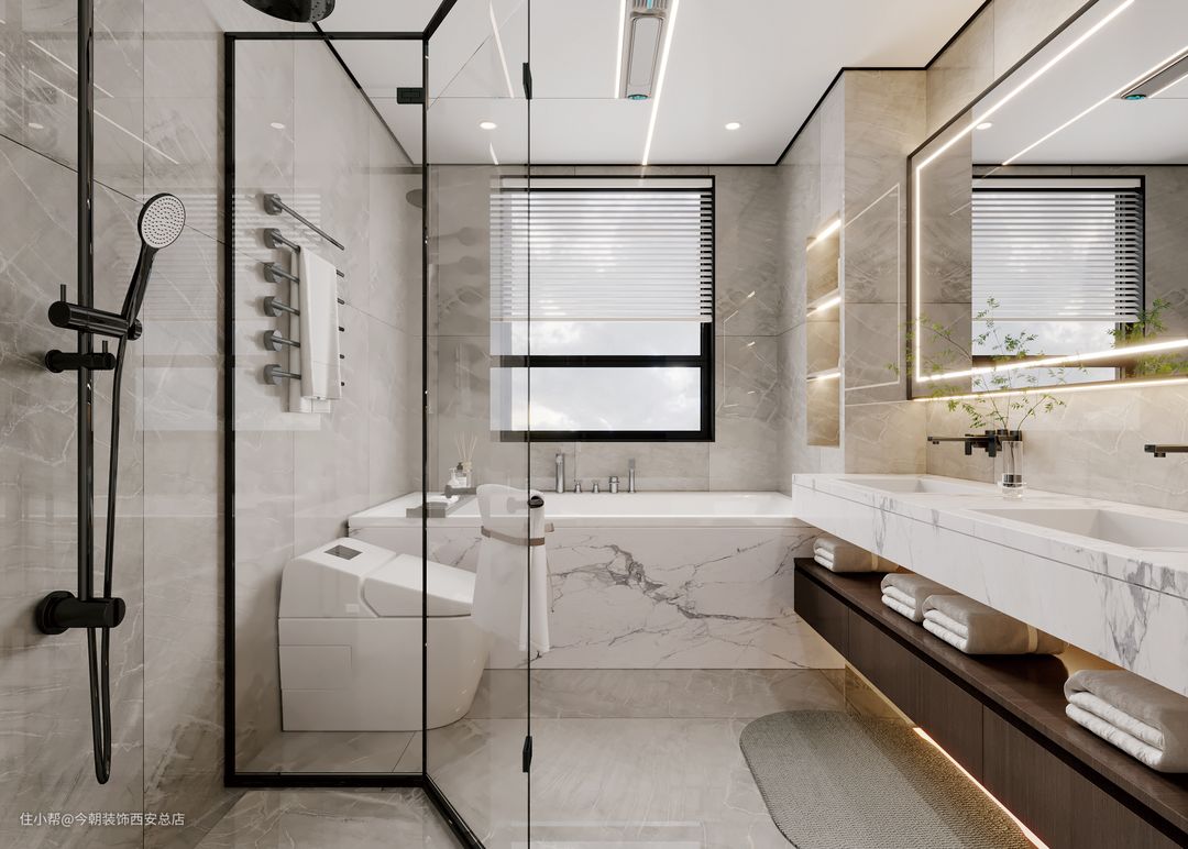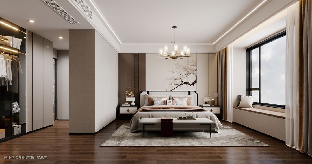 ▲ 主人房 以宽敞、明朗、足够收纳、已打理为主,借用了客卧部分的空间,用来做当季衣物收纳。 主卫按照主人的需求设计【双人梳洗区】【泡澡区】【淋雨区】,舒适度分值拉满。
