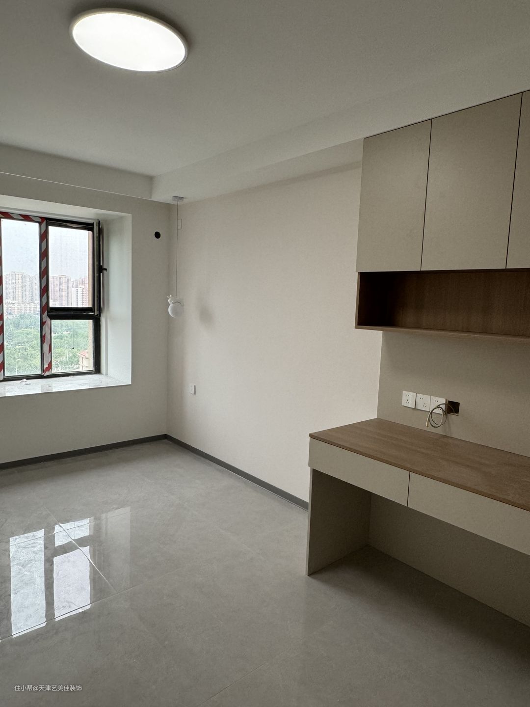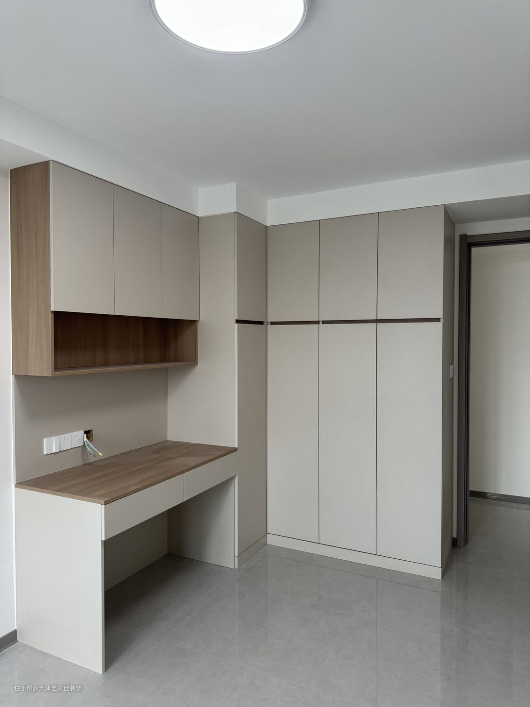次卧作为女儿房,定制了书桌衣柜,小兔子吊灯,非常温馨,后期孩子可以在这个区域学习。