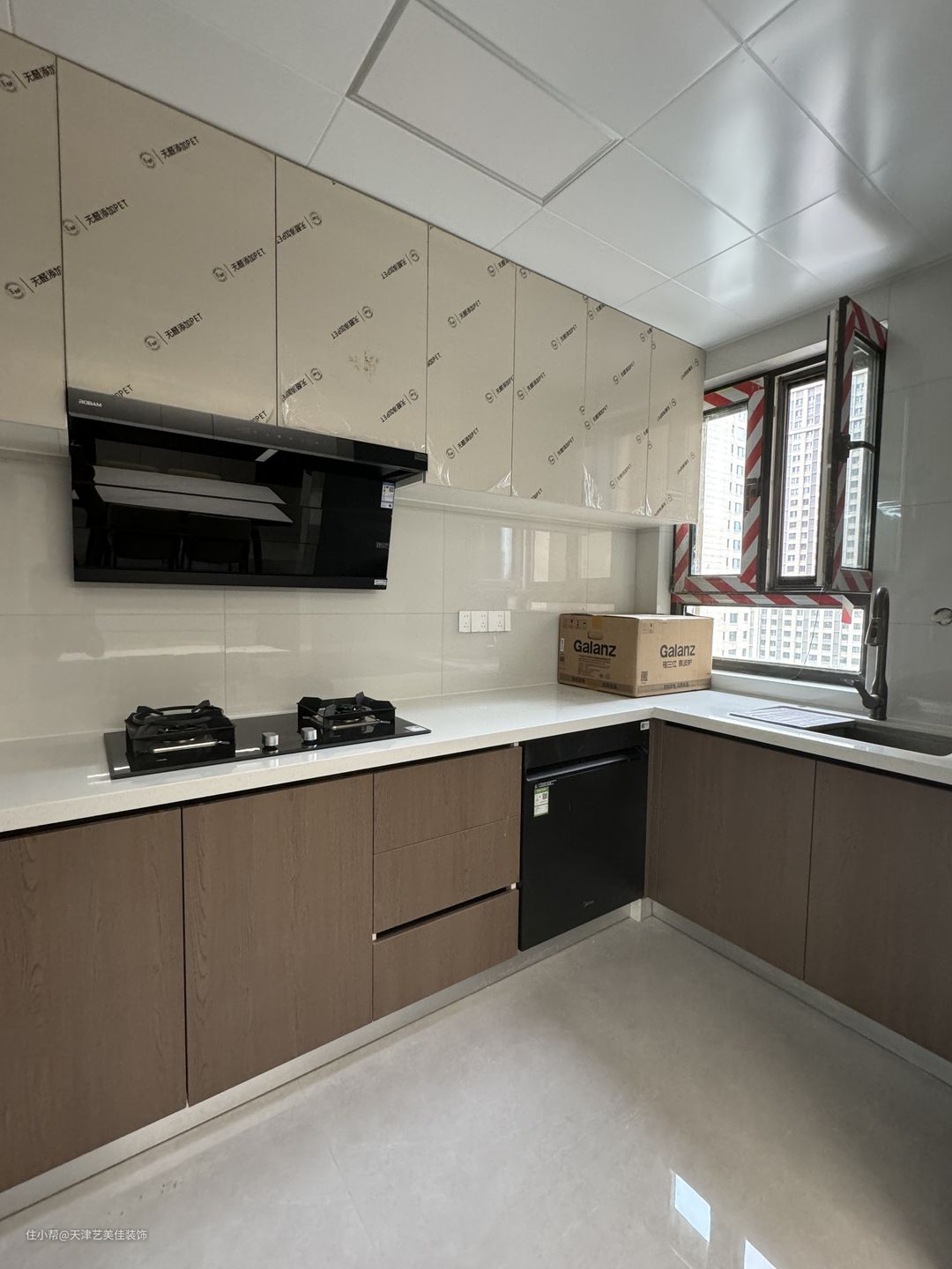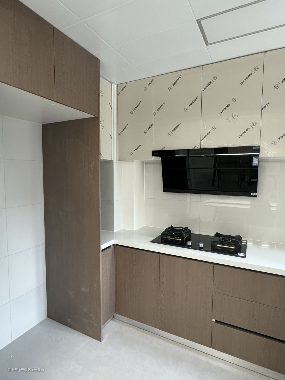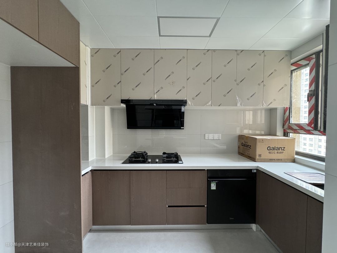 厨房做了开放式厨房,U型设计,最大化利用空间,结合动线合理布局,洗菜盆做了台下盆设计,不容易藏污纳垢,后期入住也方便打理卫生,地柜吊柜的颜色整体搭配也非常高级,墙砖选了400*800的亮光砖,效果非常好。