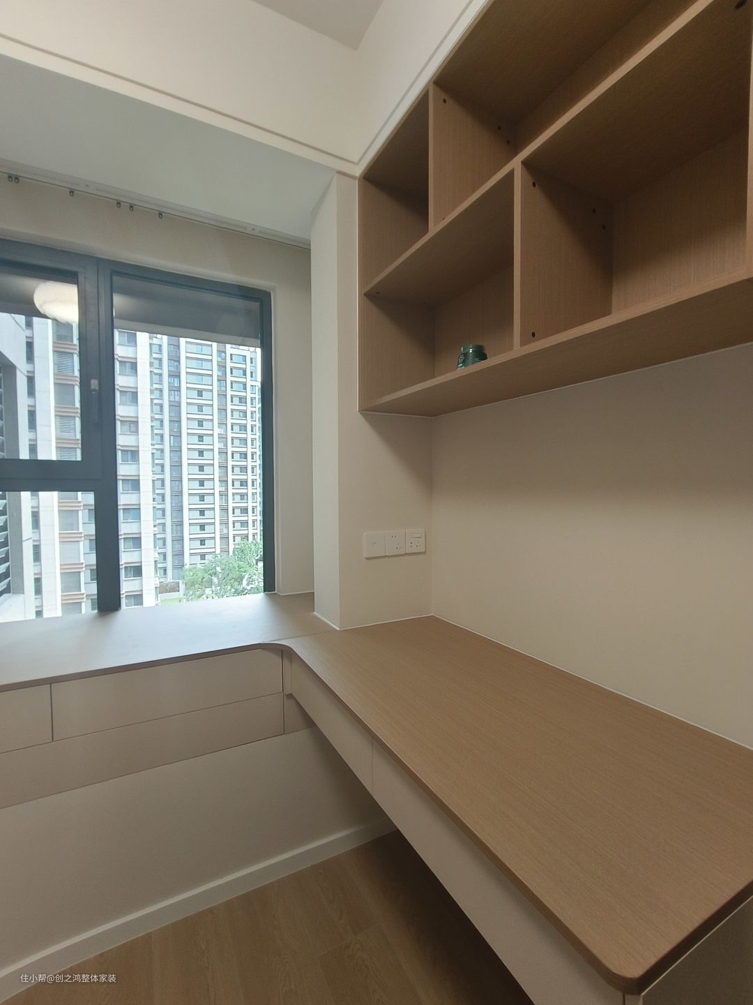 次卧巧妙将飘窗改造抽屉增加收纳功能,靠墙做书桌设计,方便家人居家办公学习使用;