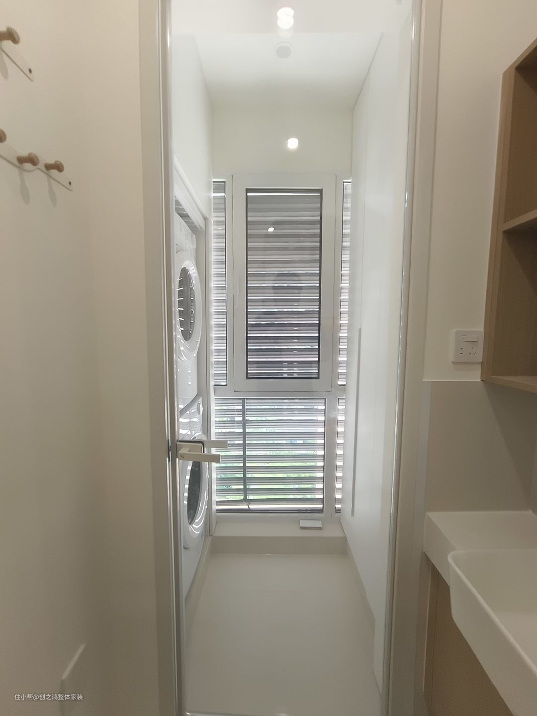 卫生间选择陶瓷一体盆做墙排设计,不占用多余空间,而且非常方便打理,镜面柜更方便收纳洗漱用品~