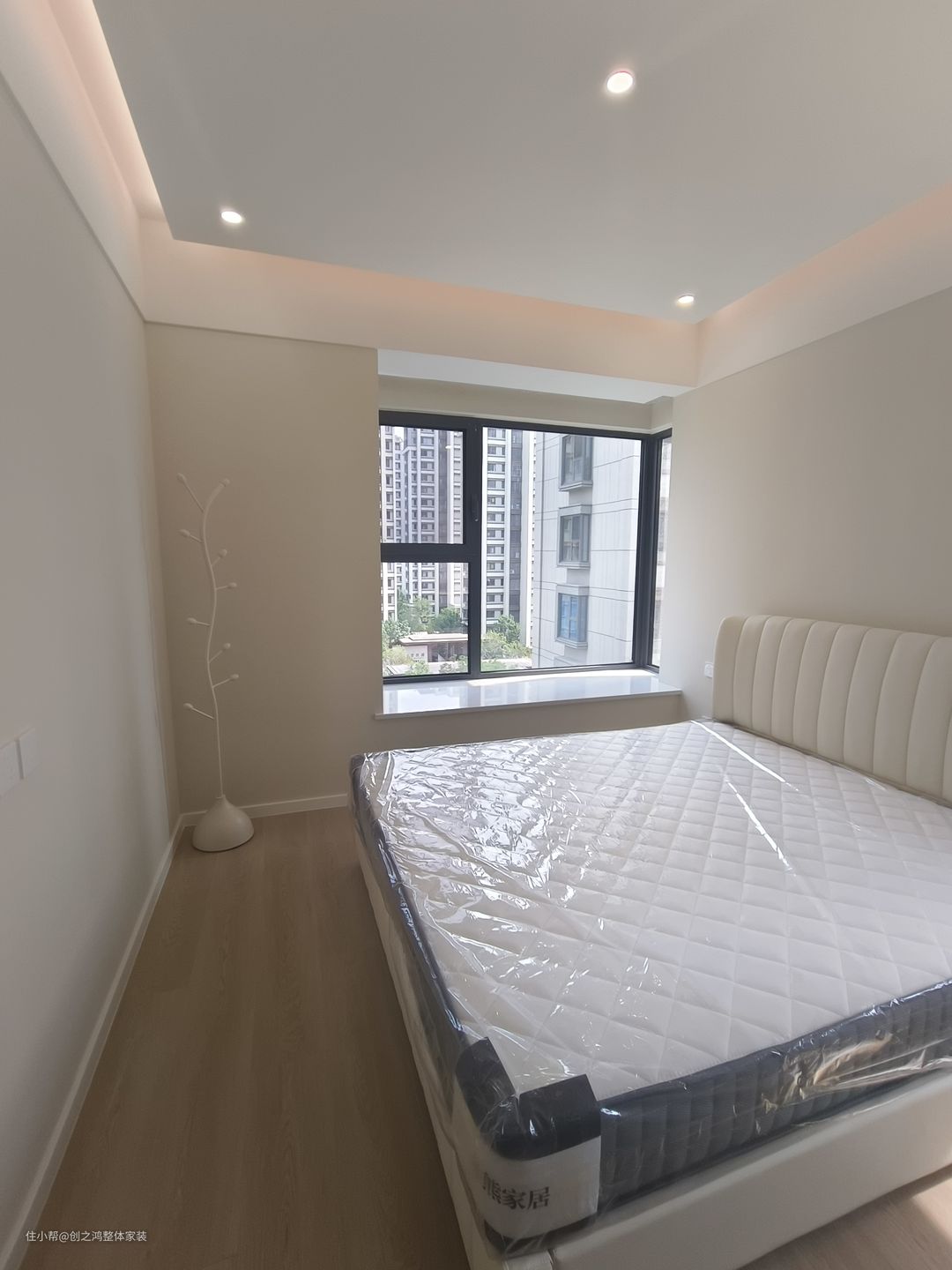 主卧没有做过多装饰,床选择米黄色的软包床头和整体色调做搭配,卧室的小转角也巧妙的利用起来做一个使用的梳妆台,不会造成空间浪费~