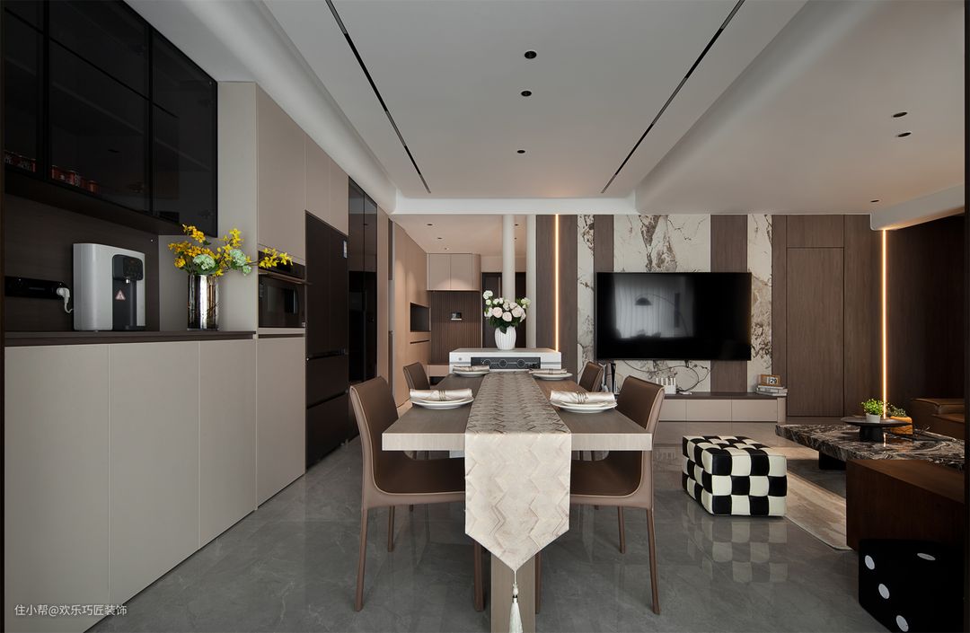 每一寸都凝聚着设计师对现代生活的深刻理解和独特诠释,空间中以柔美雅致的线条为代表,善用材质与比例创造现代意境,在实用的现代风格之上探寻更深沉层次的美感。
