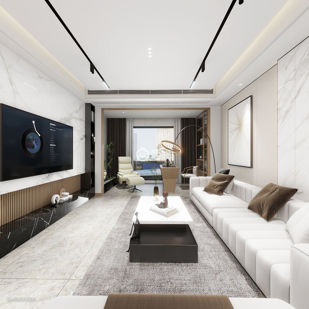 说在前面客餐厅电视墙用悬空式造型和护墙饰面板一体式做一个隐藏卧室门的设计,让整体空间融合度更高,全屋极简无主灯设计,主卧带独立衣帽间和化妆台区域,多功能结合让储物收纳空间更加充足,运用米白色的全屋家具,体现现代轻奢风格时尚纯净的品质感全屋概览客餐厅主卧次卧次卧景观阳台厨房主卫卫生间生活阳台卫生间