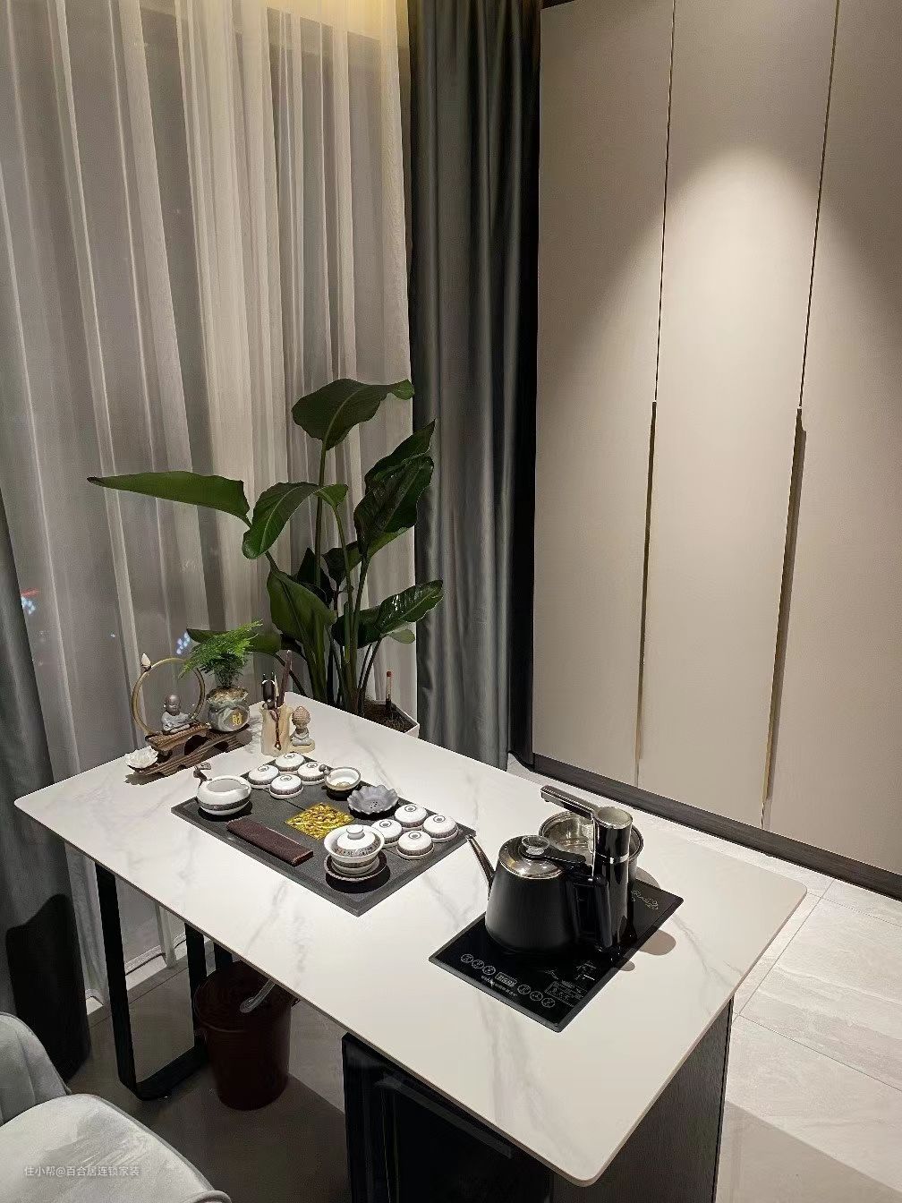 保留的阳台设计,不仅让家与自然更加亲近,更通过阳台柜与茶案的设置,为家增添了一处休闲的好去处。全开落地窗与窗纱窗帘的搭配,让阳光与微风自由穿梭,为家带来无限的生机与活力。