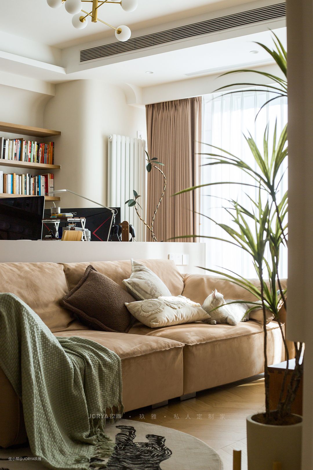 在消费降级的大背景下,越来越多的年轻人更愿意为颜值和品质买单,追求美好生活和自我价值的肯定,专家们将这种现象称为“本我主义。本期我们分享的业主可以说是这群人中的典型人物了,在和他们沟通交流中,我们发现他们追求自我感满足,拒绝被生活裹挟,希望家不仅仅是一个物理空间,更是生活态度和情感寄托的表达。 这套房子原本是个110㎡两居室,户型中规中矩,买下它一是因为采光好,二是承重墙少,方便拆改。屋主夫妇是典型的“本我主义”,家中有两只“毛孩子”的相伴,两人两猫,省下了育儿成本,所以更重视活在当下,他们形容“不用怎么费力,就能让猫过上梦寐以求的生活了”! 在这个人人想要私密空间的当下,他们反其道而行,只追求自己的想要的生活方式。想要客厅采光好更通透,便牺牲一间卧室改为客厅;想要屋内动线更加流畅,便给卧室增加一扇门,“∞”动线行走,到每个功能区都更加方便;想要落地窗,便抬高卧室地面,做地台床,降低高差,实现落地窗情结;想要睡眠好,便狠心买了一万六的床垫,自己特开心,到处安利;想要在工作区不枯燥,保持美观,电器选择了美观与实用价值并存的壁纸电视,价格合适且好看好用,来做客的朋友都赞不绝口~