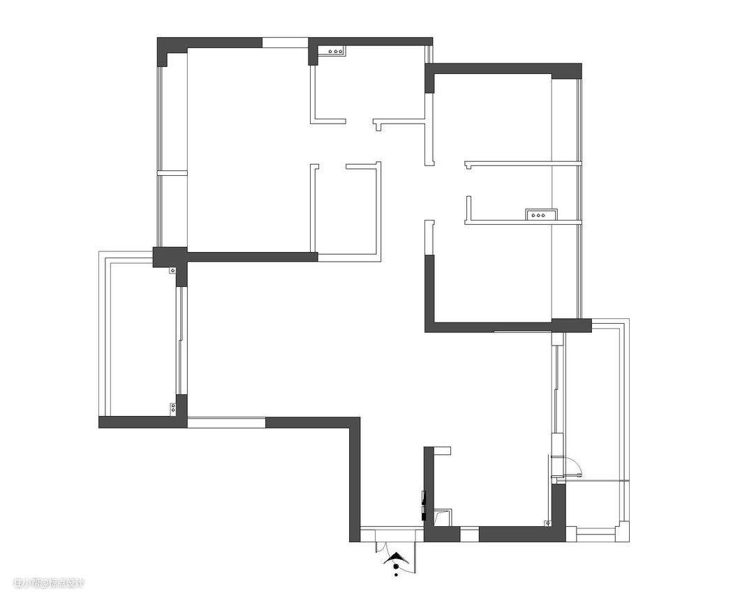 本案例采用了现代简约的设计风格,以白色和木色为主色调,营造出一个干净明亮且宽敞舒适的居住环境。在设计时深度与业主需求融合,满足业主个性化需求的同时也强调空间之间的情感关联,为业主提供了一个既能自我表达又能实现情感价值的居住环境。 原始户型改造点: 1. 房屋左右两边都有一个大阳台,这对业主来说用不上,很浪费空间。 2. 厨房和餐厅空间比较分割,空间不够开阔,使用也不舒适。 3. 进门后的视线就是长长的过道空间,显得房子很狭小。