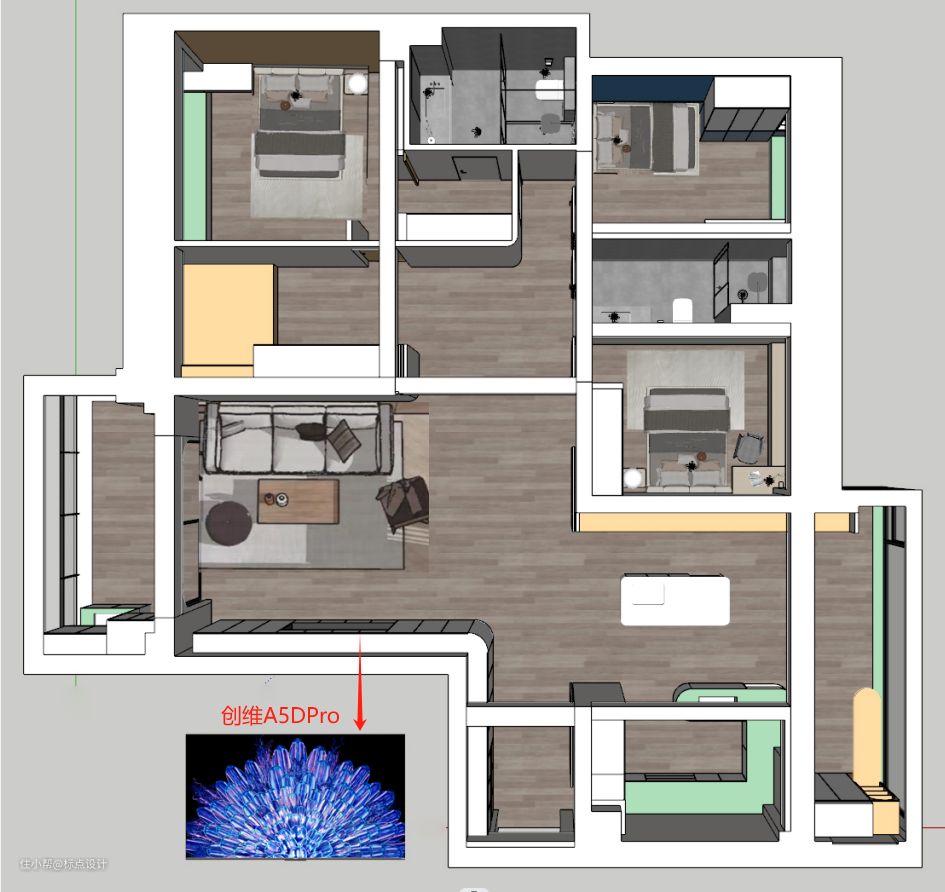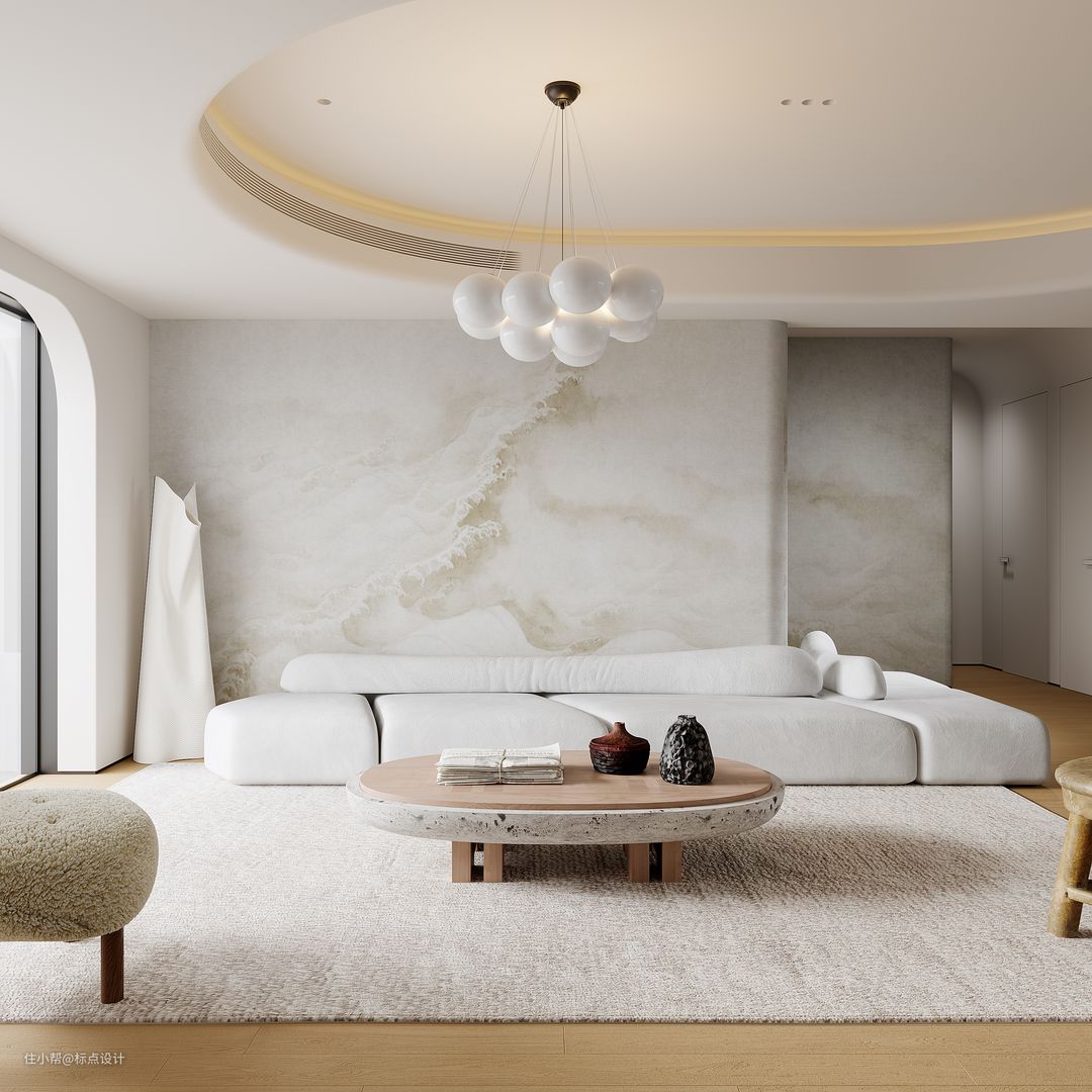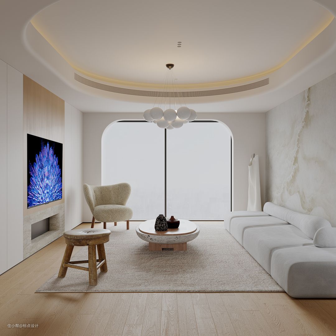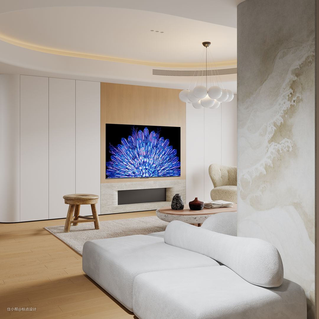 客厅以白色与木色的搭配为主营造出现代、清新的氛围。将阳台封窗纳入客厅让空间感更加开阔,同时也增加了室内的自然光线,提升舒适度。整面电视墙既能提供收纳空间,又能将电视很好地融入整体设计中,确保了视觉上的整洁和统一,靠墙设计整面的电视背景墙,让空间更完整。 在设计初期的时候业主就看上了这款创维 A5DPro 85寸电视,因为家里有老人与孩子日常他们看电视的时间多一点,所以保护他们的眼睛很重要。这款创维 A5DPro 拥有的 Mini LED功能,让白天看电视的时候不会因为环境过亮而导致画面曝光的情况,这能让老人和孩子在观看的时候,眼睛不会感到疲累,保持用眼舒适,不用担心用眼过度等问题。 在设计初期我们就有了电视的具体尺寸,根据尺寸定制合适的电视柜,因这款电视的厚度86mm,所以定制电视柜的时候,我们预留100mm的深度,保证电视安装完成后能与整体柜面保持平行,使电视机与电视柜完美融合。 这个家的客厅电视柜长度有5100mm,电视中心点到沙发的距离有4500mm,空间距离够大所以业主选择了这款创维 A5DPro 85寸电视,屏幕足够大,无需再考虑投影幕布,就能享受到家庭影院的氛围。并且考虑到现代简约风格和天花弧形造型,安装投影会破坏客厅整体美感。创维 A5DPro 电视搭载的京东方S+原彩抗光屏,无论白天还是夜晚画面细节都能栩栩如生,178度超广视角,色彩亮度都能精准呈现,很好的满足了业主对观影画质的追求。 并且电视还将回音壁内置在其中,能够为我们节省下原本需要单独购置回音壁的费用,无需再去进行外接回音壁的操作,如此一来,电视背景墙也能够保持完整且美观。它拥有12个声学单元+双分频音响,能够带来更沉浸的家庭影院“杜比厅”般的体验,使业主在家中轻松拥有身临其境般的震撼音效。