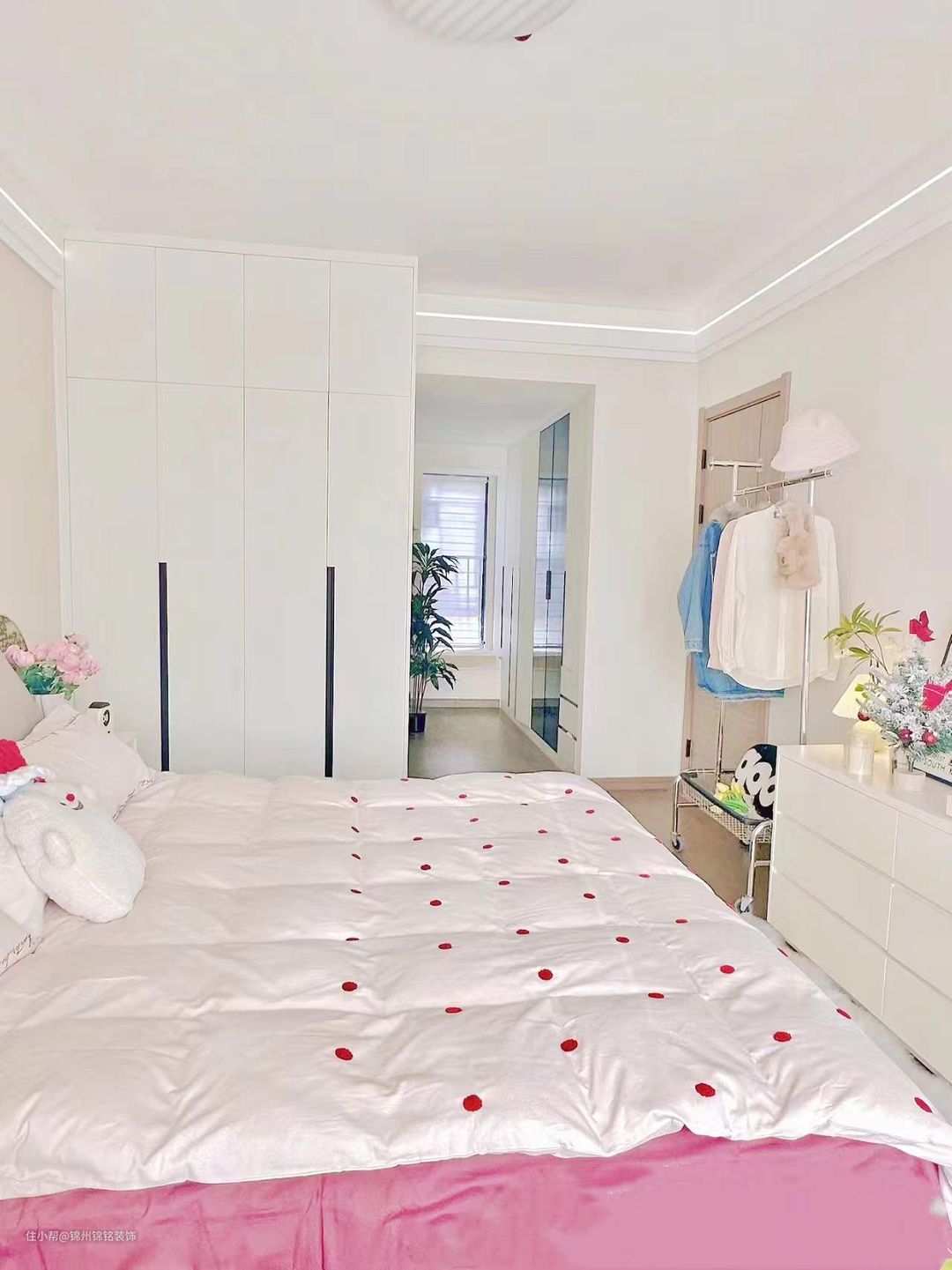 衣柜:柜门肤感白,柜体西橡木色。◆墙面:床头背景墙刷了奶咖色,其他三面墙杏子灰。◆吊顶:简单的双眼皮吊顶,走了一圈线型灯增加氛围感。