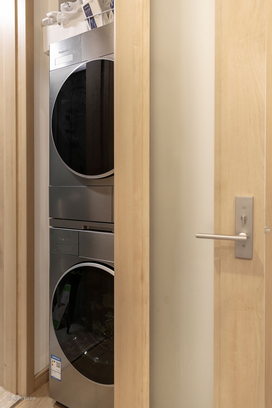 次卫占用部分次卧空间,新建墙体,形成Z型墙,妥当安置洗烘机,同时实现了干湿分离。