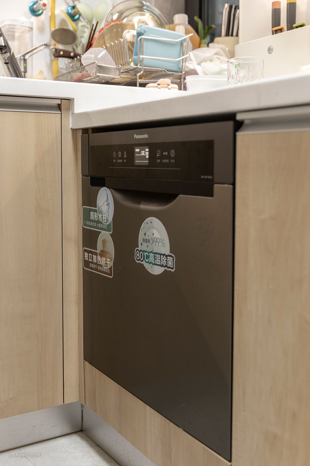 厨房定制了松下整体橱柜,色调素雅,十分耐看台面做了高低台的设计,水槽一侧台面较高,屋主洗菜时不必使劲弯腰;另一侧台面稍低一些,备菜时用着得劲,胳膊不用抬高。 高低台的小设计十分贴心,能够让屋主在做饭过程中省力不少。