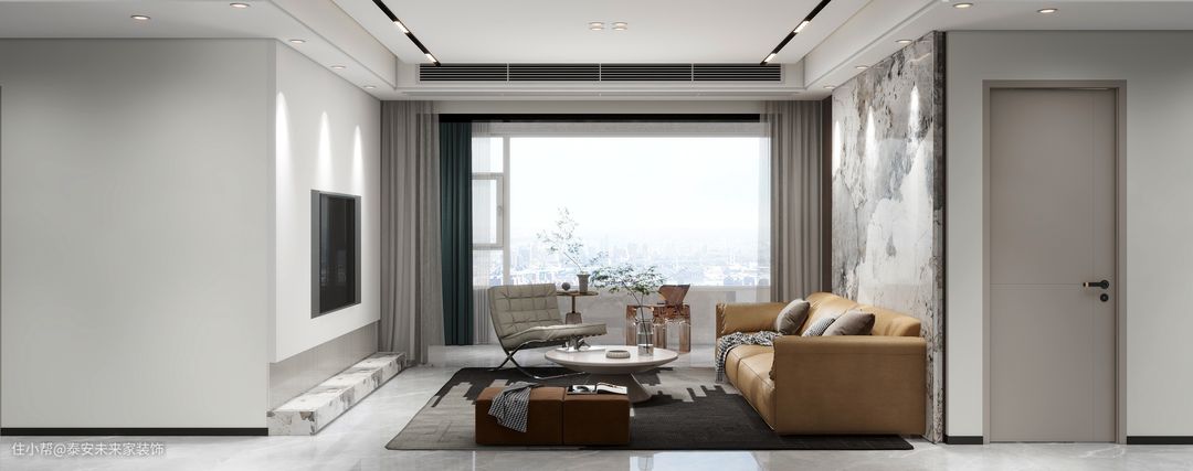 这个现代风格的客厅布局展现出了多个优点,让人一眼就能感受到其简洁、时尚和实用性。