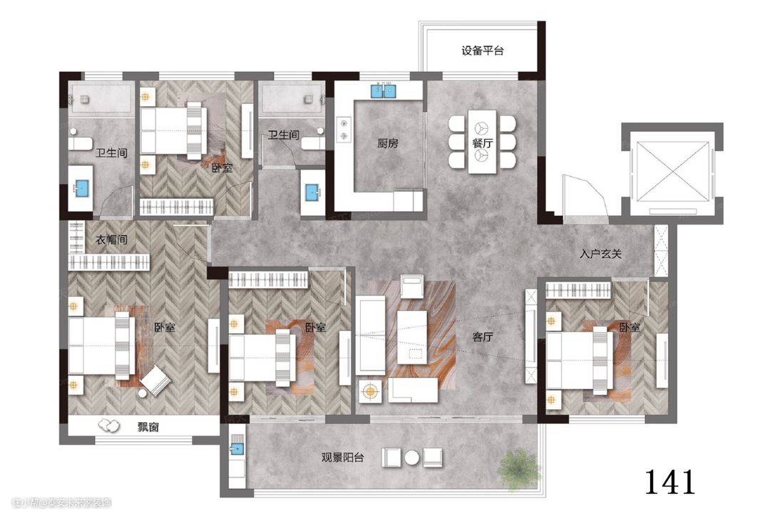 衣柜设计简约大气,深灰色与整个空间的色调相互映衬,显得更为高贵典雅。同时,衣柜的储物功能强大,满足了居住者的收纳需求。 整体色调以中性为主,为居住者打造了一个静谧、和谐的休息空间。床头板米色的选择,不仅与整体色调相协调,还增添了温馨感。