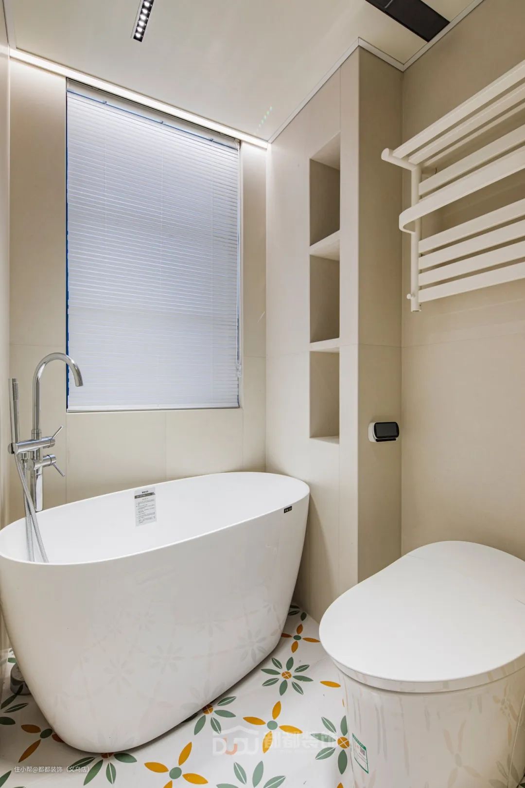 白色陶瓷浴缸和米黄色墙体瓷砖的搭配,让卫生间显得光线明亮而又柔和。这种色彩搭配不仅让整个空间看起来更加干净整洁,还给人一种温馨舒适的感觉。同时,哑光地面瓷砖的使用,既保证了防滑性,又给卫生间增加了一些色彩,使卫生间的配色不那么单调,更具层次感。 淋浴区采用半隔断的设计,既保证了干湿分离,又保持了空间的通透性。高透玻璃砖的运用,不仅大大增加了淋浴区的采光,还使整个空间看起来更加宽敞明亮。这种设计既实用又美观,让卫生间整体看上去更加优雅时尚。 在卫生间的设计中,还可以考虑加入一些实用的收纳功能。例如,在浴缸旁边的墙上安装一些壁挂式的置物架,用来存放洗浴用品和毛巾等物品。在淋浴区的一侧,可以设置一个壁龛,用来放置洗发水、沐浴露等常用的洗护用品。这些设计都能让卫生间保持整洁有序,提高使用效率。