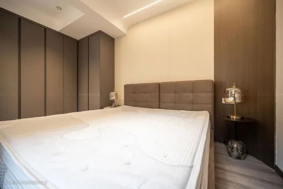 🆕对于长辈来说卧室的舒适性是排在第一位的,删去多余装饰,只用墙布增加卧室的柔和感,加上一门到顶的衣柜,想必这就是长辈们喜欢的那种温馨整洁的卧室吧!
