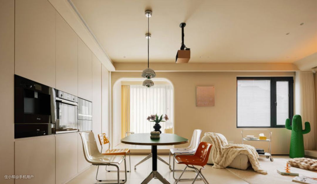 客餐厅是一整个一体化的布局,看起来更显大。我们家整体是奶油色调,选的艺术 漆 更偏暖色调一些,看起来就会更加的温暖、治愈一点,符合我想要的感觉。