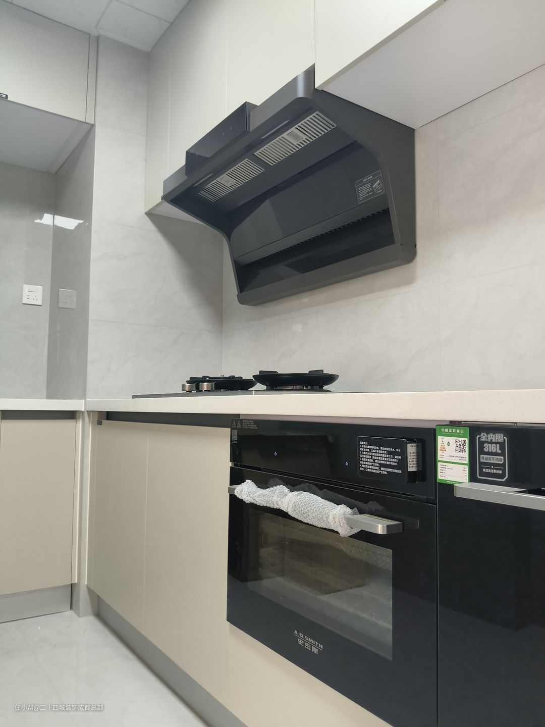 厨房是我们日常高使用率的场所,为了提高便捷性并避免碰头风险,吊柜的设计深度略浅于地柜,使物品的拿取更为轻松。 厨房电器巧妙地嵌入橱柜之中,不仅整洁美观,还配备了洗碗机,让餐后的清洗工作变得更为轻松,真正实现了“解放双手”的舒适体验。