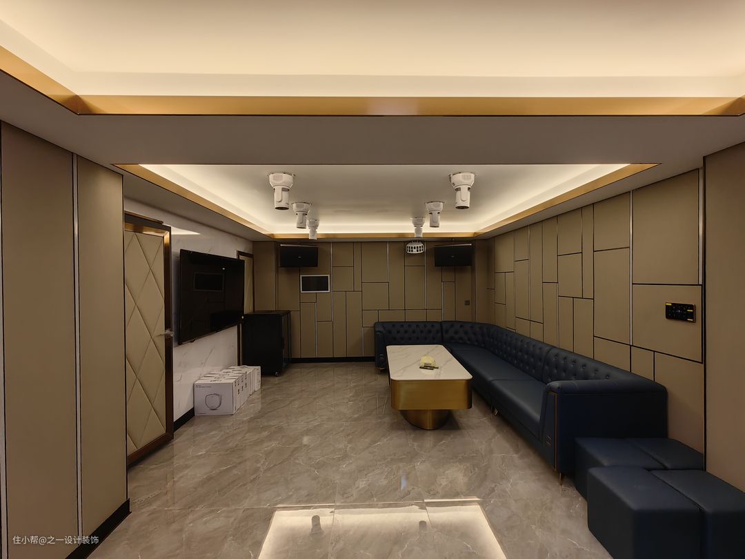 地下室空间也是设计布置的非常到位,进来地下空间就是一个非常敞亮的大厅,另外还规划了一个相当豪华的私人ktv,组建一套完整又专业的家庭卡拉OK系统,在这里享受足不出户就能和亲友享受这种简单的快乐,酒柜,收纳各种名贵的酒,方便拿取,又好保存。辅助照明,营造气氛之外,智能声光联动的效果灯具可以完美地与歌曲声音保持一致