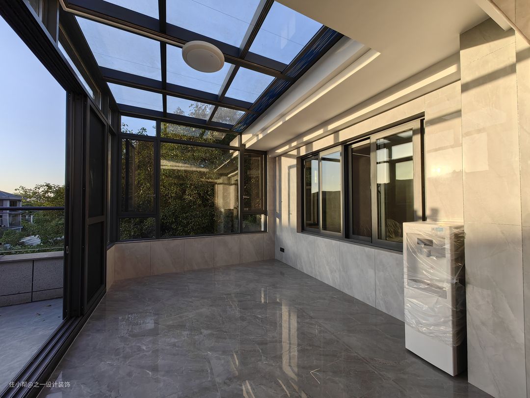 三楼阳台处做了一个阳光房,出来还有阳台,阳光房采用隔热消音的材料,打打降低了夏天室内的温度,一个通透明亮的阳光房 闲暇的时候 捧一本书,喝一杯茶 静静地放空自己 看着温暖的阳光爬进窗户 与自己来一次亲密接触 空间可以不必太大 配上大大的玻璃窗 光线非常好,种点花草 摆上自己喜欢的装饰物,仙气飘飘 绝对是家里最受欢迎的区域
