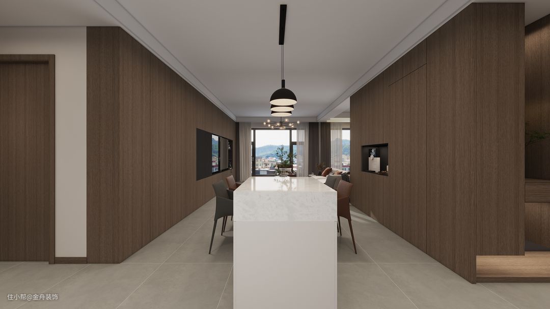 开放式厨房增加空间的通透性,做了嵌入式的冰箱整洁美观