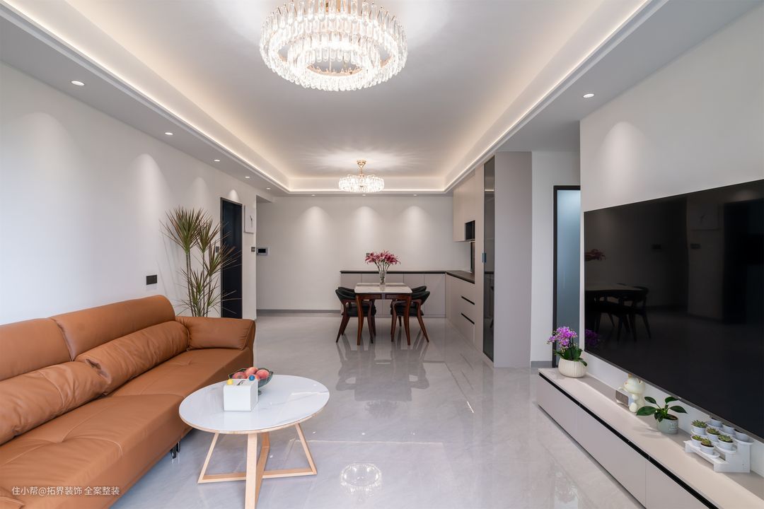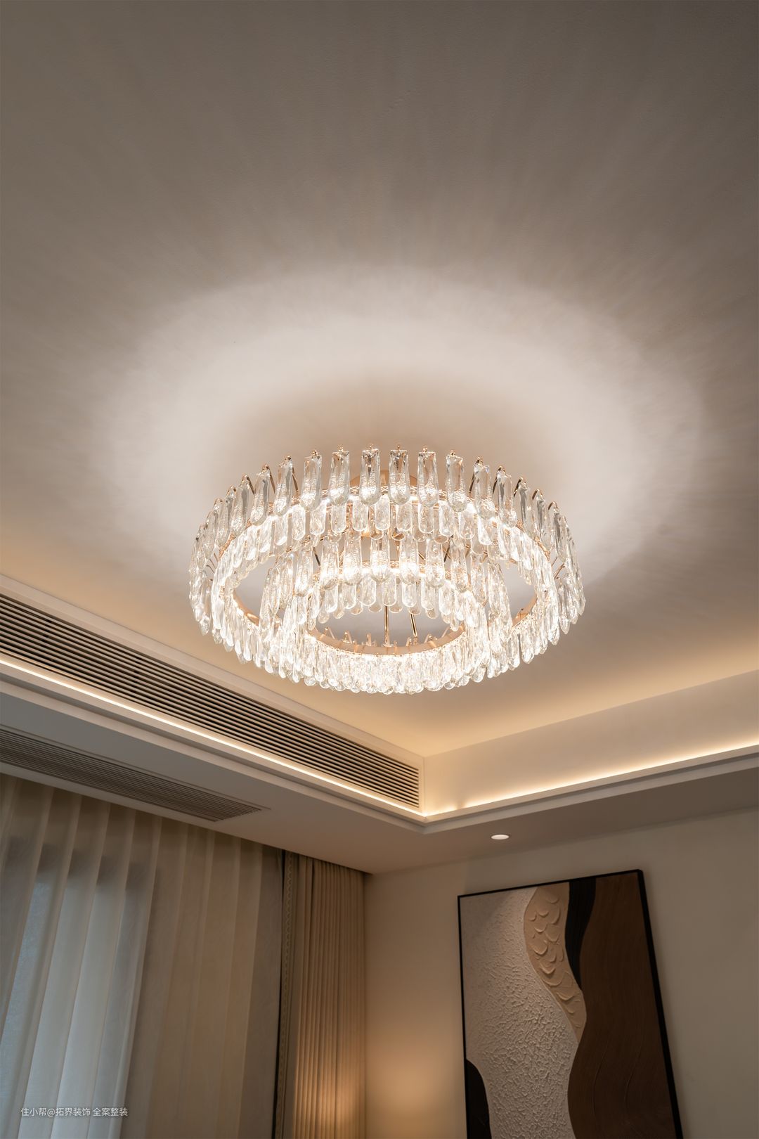 天花板上使用回型吊顶+吊灯的结合,空间显得更为通透明亮,还能增加氛围感。