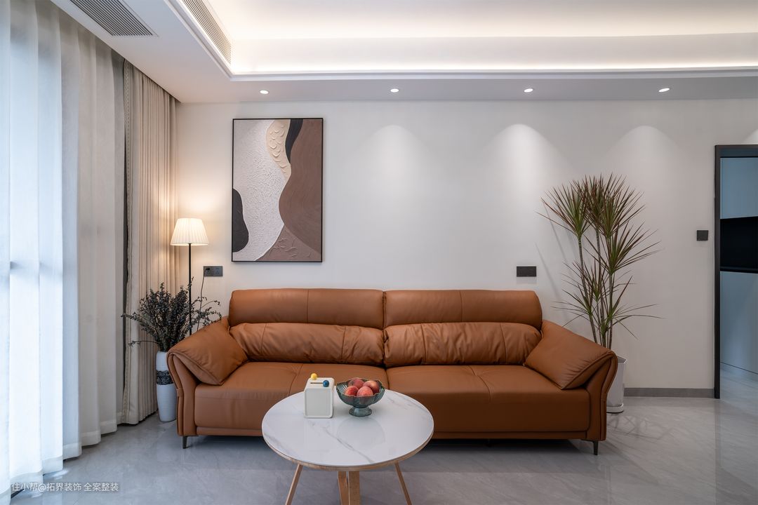 橙色的皮质沙发在这个现代风的家中瞬间脱颖而出,给人一种温暖而有活力的感觉。