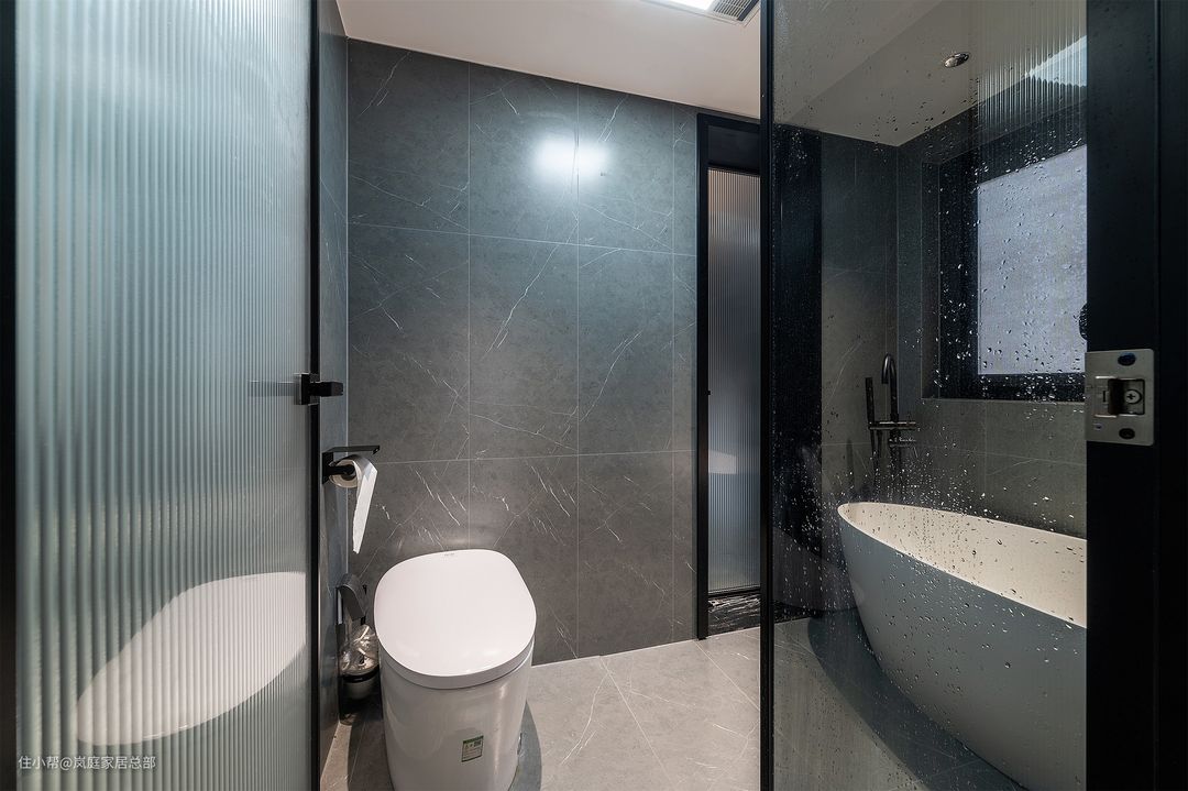 家里只有一个卫生间,所以就把洗漱台外移出来,做到了基本的干湿分离,一家人上厕所和洗漱的时候互不影响。 落地式的洗漱台,底部却是留空的处理,方便打扫无卫生死角。高端大气的灰色洗漱台,跟卫生间的整体色彩做到呼应,也更加耐脏。 淋浴区的墙地面都是通铺的灰色瓷砖,柔光砖看上去不会觉得过于的压抑。加上有充足的光源点缀,视觉上更显空间开阔明亮。