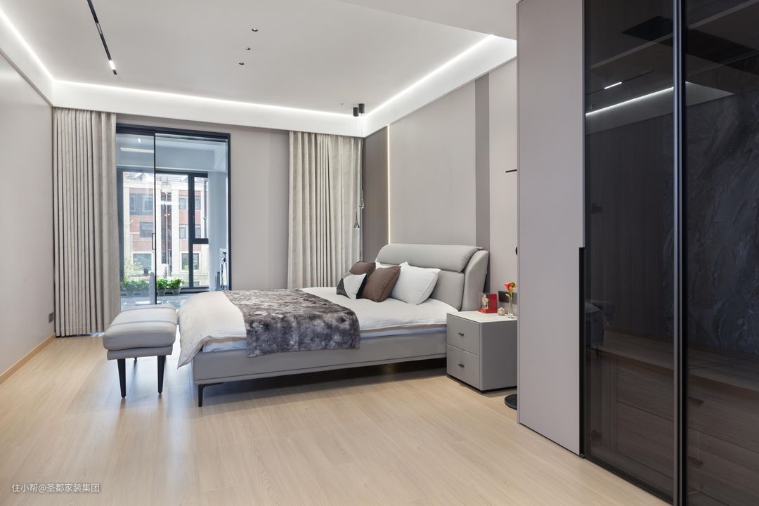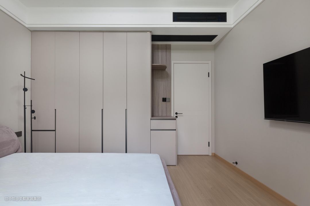 床头的小型木质床头柜,简约而不失质感。上面摆放的台灯,不仅为夜晚的阅读提供了便利,更添了几分温馨的氛围。