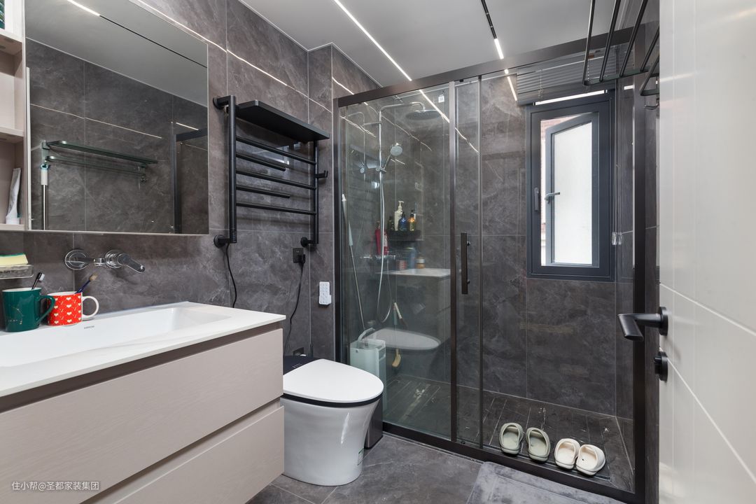 卫生间干湿分离设计,黑白为主色,视觉明亮又简洁不需要过多的装饰。