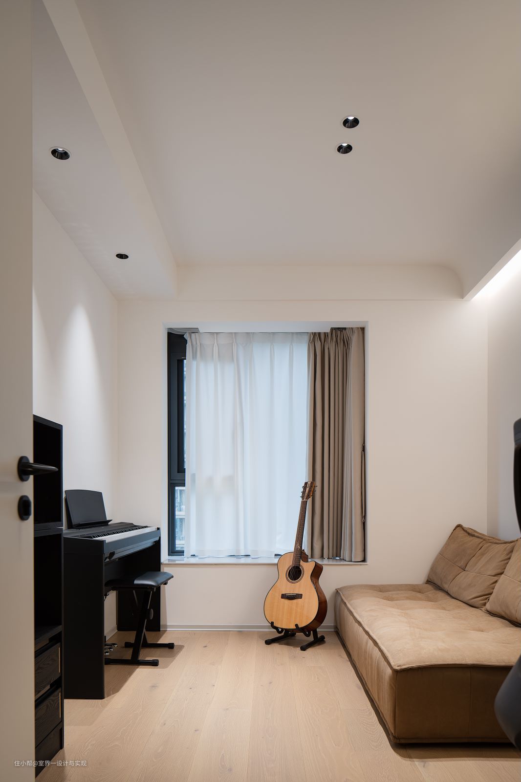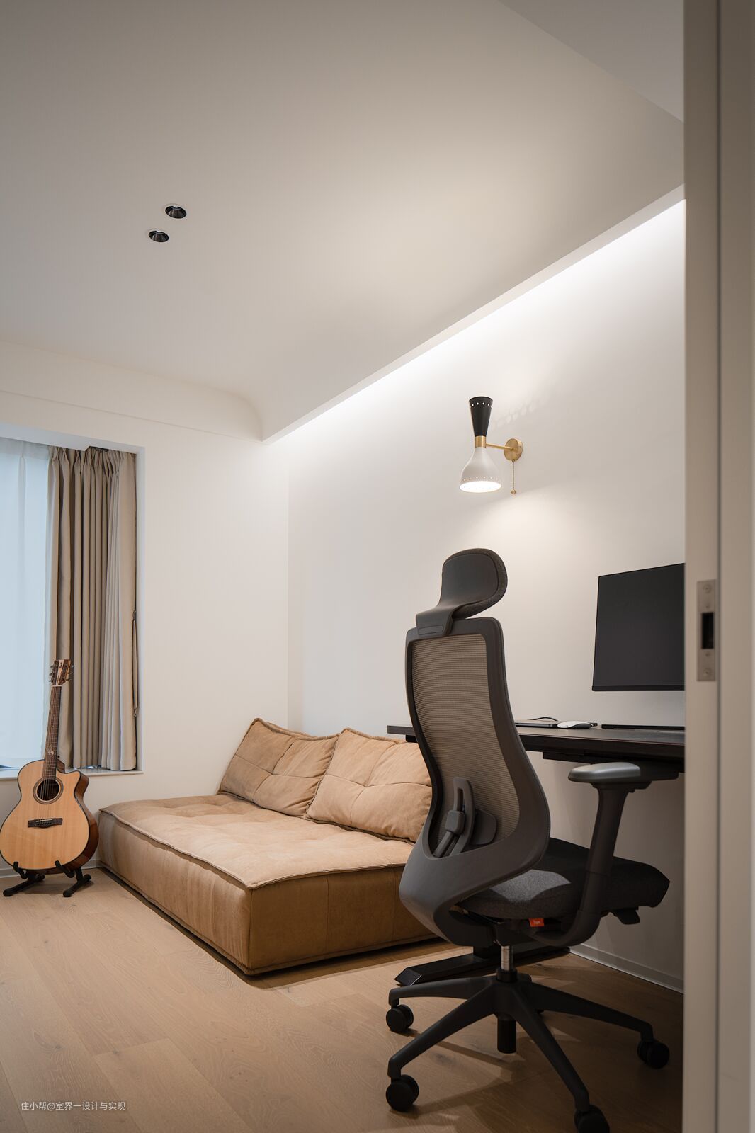 纠结客房还是书房?告诉你,成熟的选择当然是——多功能房!一方多用,生活更加丰富多彩! 办公区域和钢琴区域都可以满足;摆放一张舒适的沙发床,不仅是自己的休闲角,有客人来访时,轻松展开就是一间温馨的客卧。