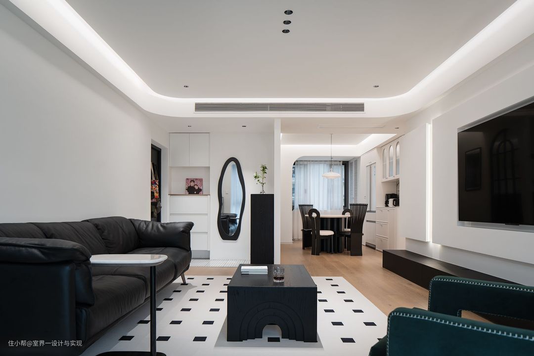 步入客厅,首先映入眼帘的是那一抹纯粹的白色与深邃的黑色。这两种颜色的组合,不仅拓宽了空间的视觉边界,更在无形中营造出一种简洁而不失高雅的氛围。