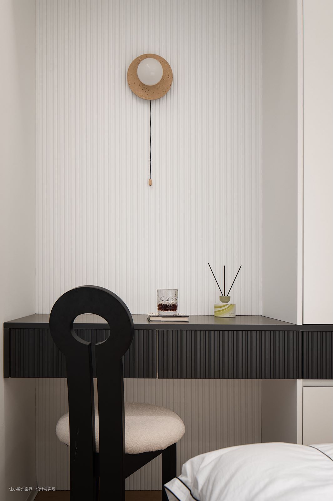 没有衣帽间又何妨?整墙衣柜搭配梳妆台,竟如此妙不可言! 床尾那整墙衣柜,与梳妆台完美穿插融合,构建出一体化的精妙格局,尽显清爽简约之美,对空间的利用恰到好处。