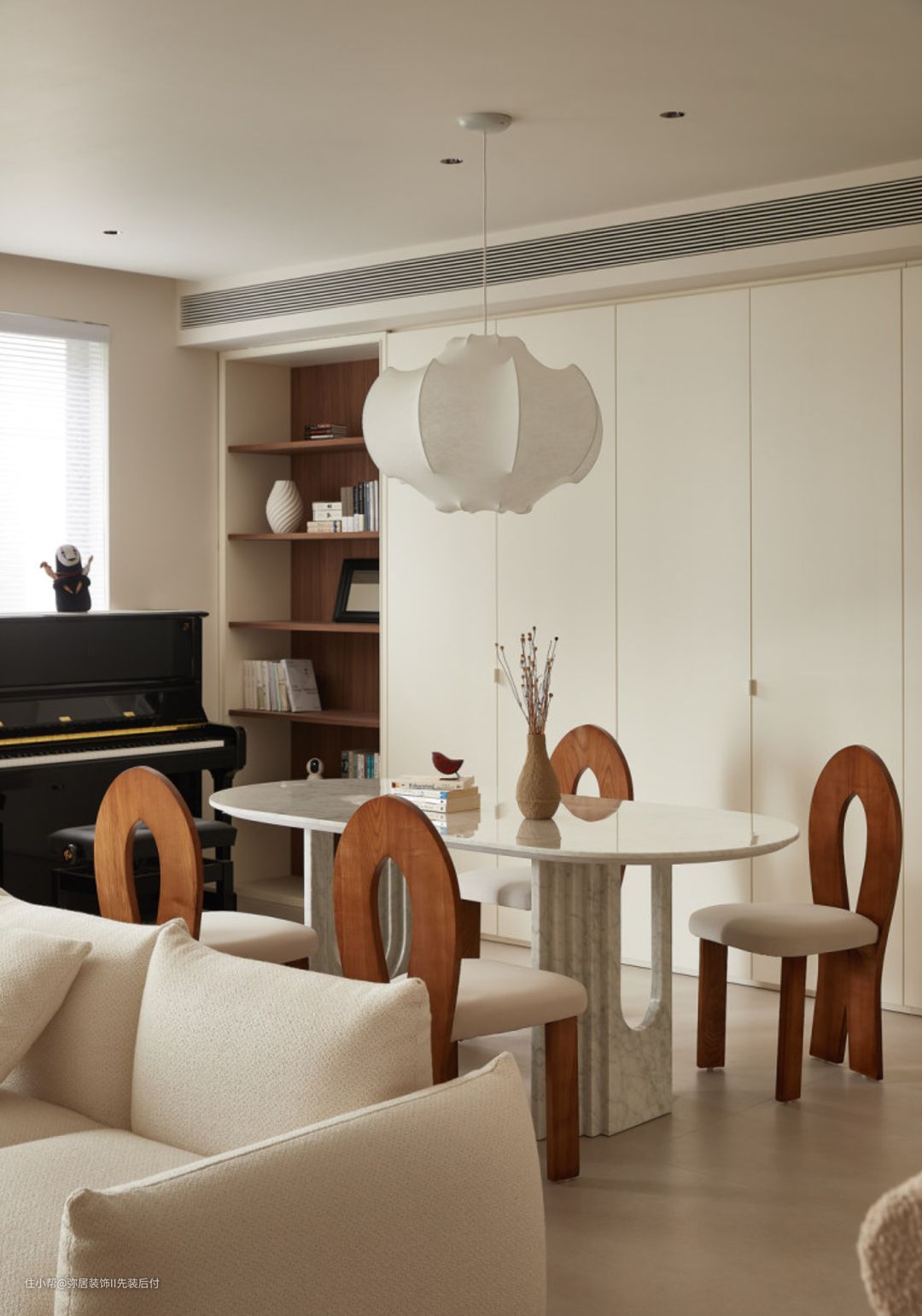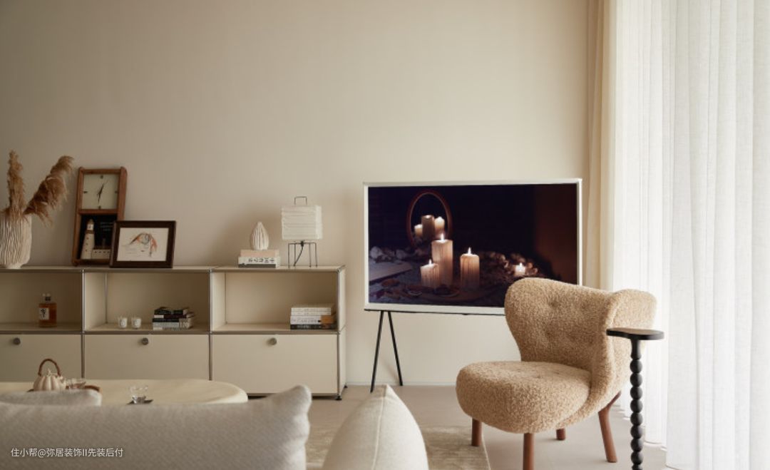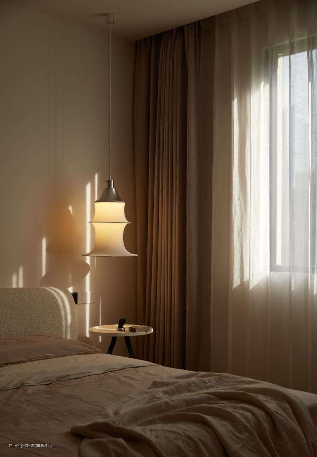 风格定位是现代轻法式,有点小优雅,更多的是温馨柔美。整体的色调非常和谐, 温温柔柔的奶茶色系,一回到家就瞬间感到放松,真的有被这个家治愈到。