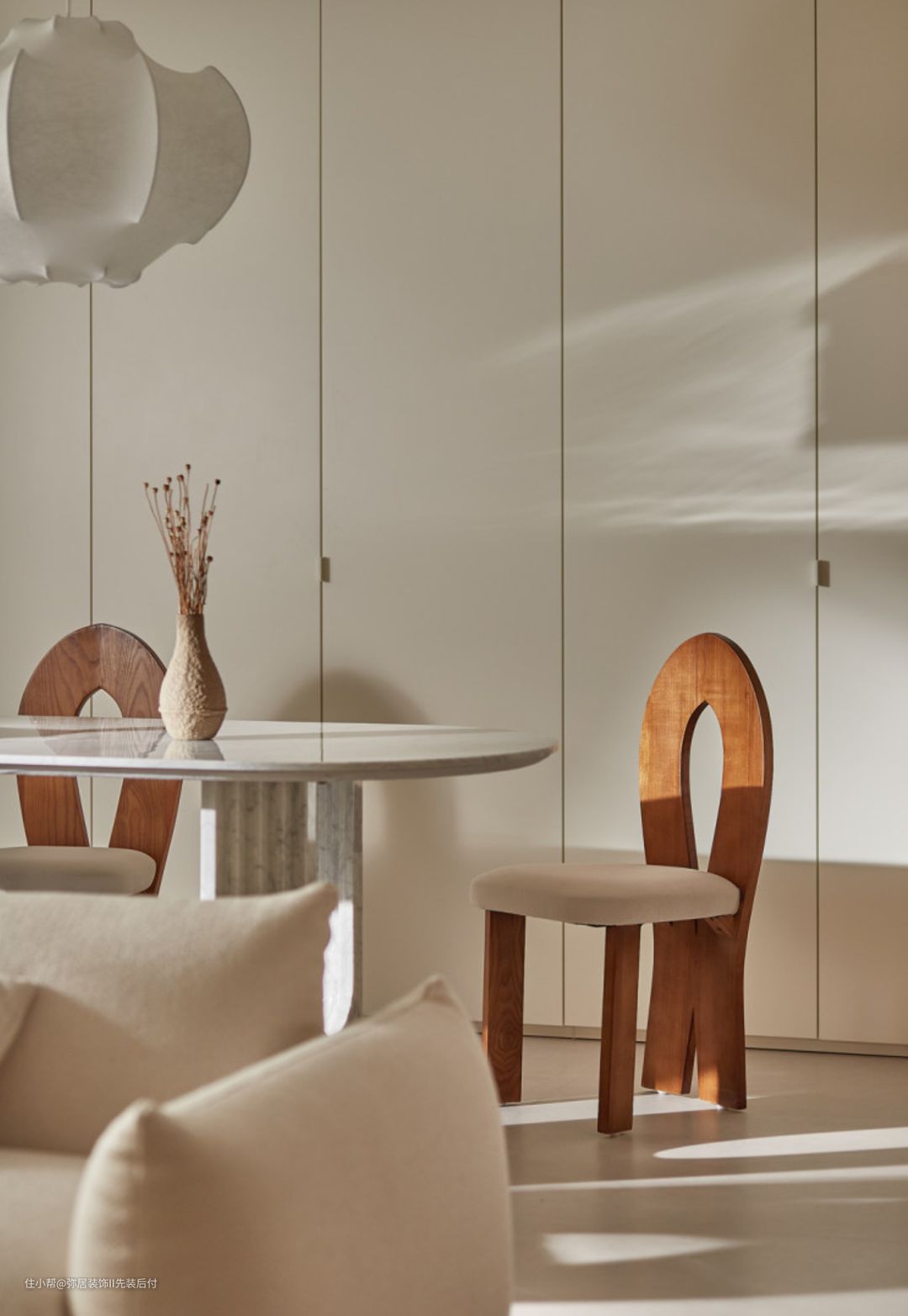 释放更多的面积给餐厅这边,总之挺宽敞,看起来敞亮。 餐桌椅搭配业主觉得很满意,很有法式精致的感 觉,生活充满仪式感!