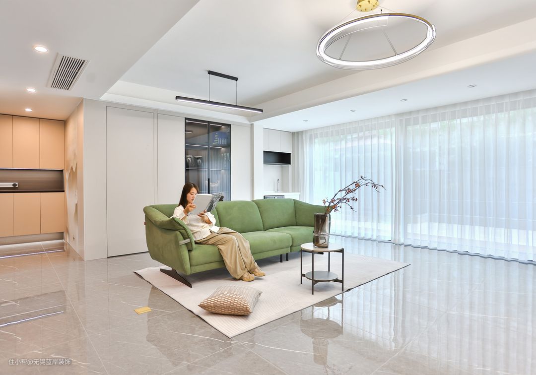阳光透过双层玻璃门洒进客厅,那柔和的光线仿佛给整个空间披上了一层白色的纱幔。