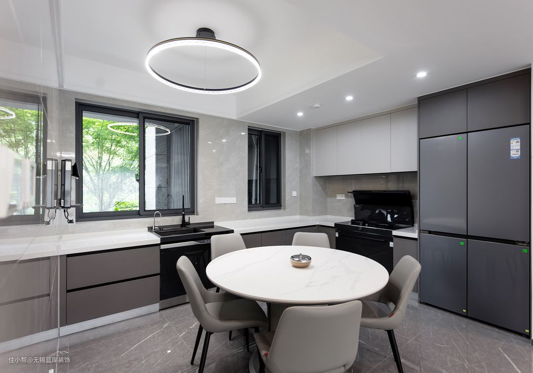 开放式餐厨一体化,打破传统上厨房和餐厅作为独立功能区域的界限,通过整合两者空间,创造一个多功能的生活空间,实现功能性、美学性和实用性的完美统一。