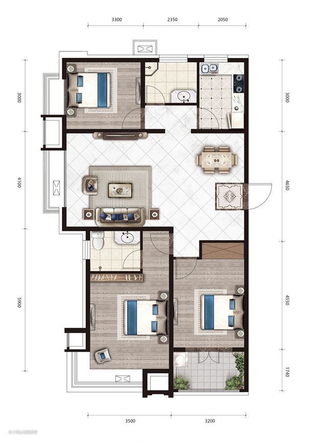 平面图中,一个精心规划的方案跃然纸上,每一处细节都透露出设计师对生活品质的深刻理解与追求。 步入这个空间,首先映入眼帘的是宽敞明亮的客厅区域,客厅作为家庭生活的核心,其布局显得尤为关键,在这张平面图中,沙发被巧妙地放置在窗户旁,既能享受自然光的沐浴,又能远眺窗外的风景,为居住者带来一份宁静与惬意。 沙发的颜色与整体空间的灰色和棕色基调相得益彰,展现出一种低调而高级的质感。茶几上的简约装饰和一旁精致的灯具,无不透露出居住者对生活的热爱与讲究。 整个设计方案在注重功能性的同时,也不忘追求舒适性,每个空间都经过精心的规划与布局,确保居住者能够在这里享受到最佳的居住体验。