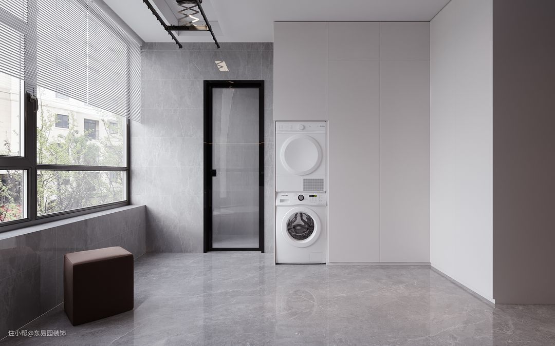 设计以白色和灰色为主色调,营造出一种简洁、现代且宽敞的空间感。白色墙面和天花板提升了光线的反射,使空间显得更加明亮。灰色作为辅助色,既不过分张扬,又能增加空间的层次感和深度。