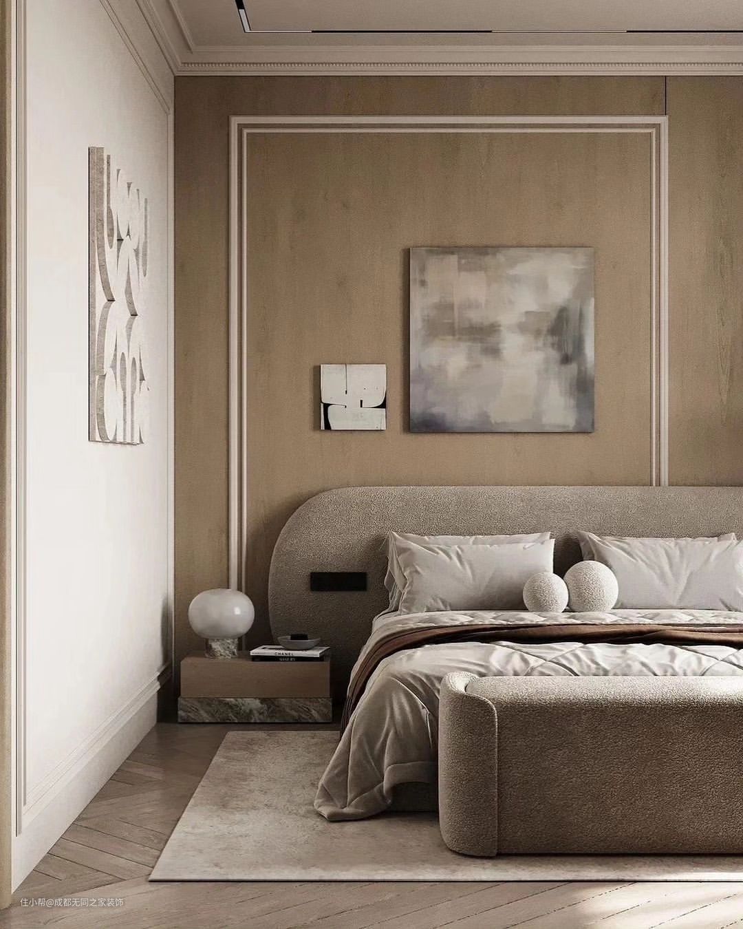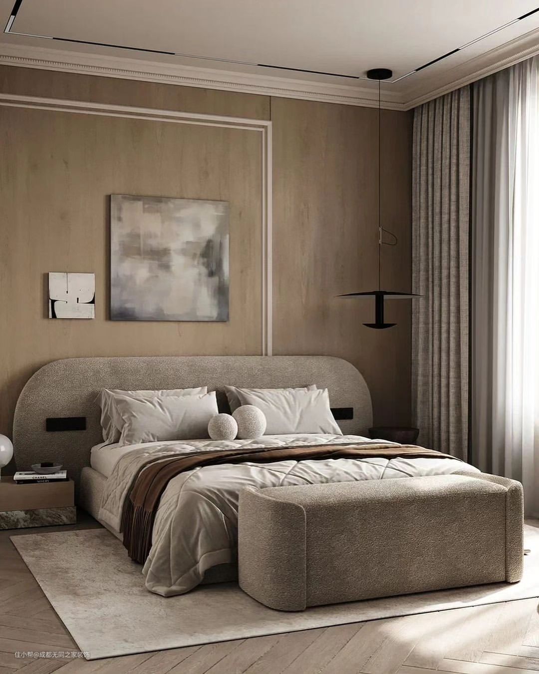 舒适温暖的色调搭配温柔的家居定制,打造出一个高级的奶茶色氛围感卧室,让人一见倾心。