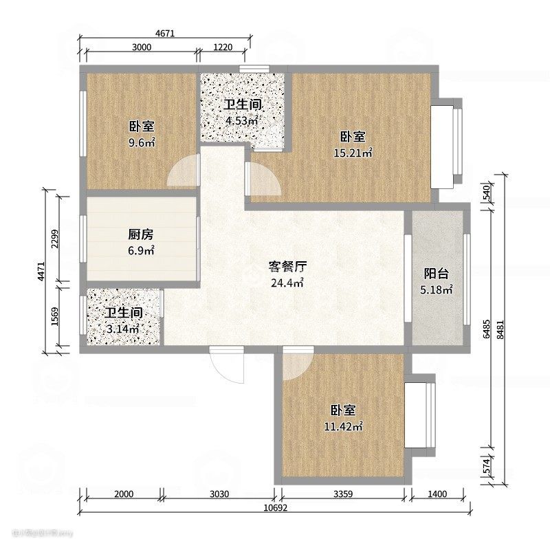 97㎡3室