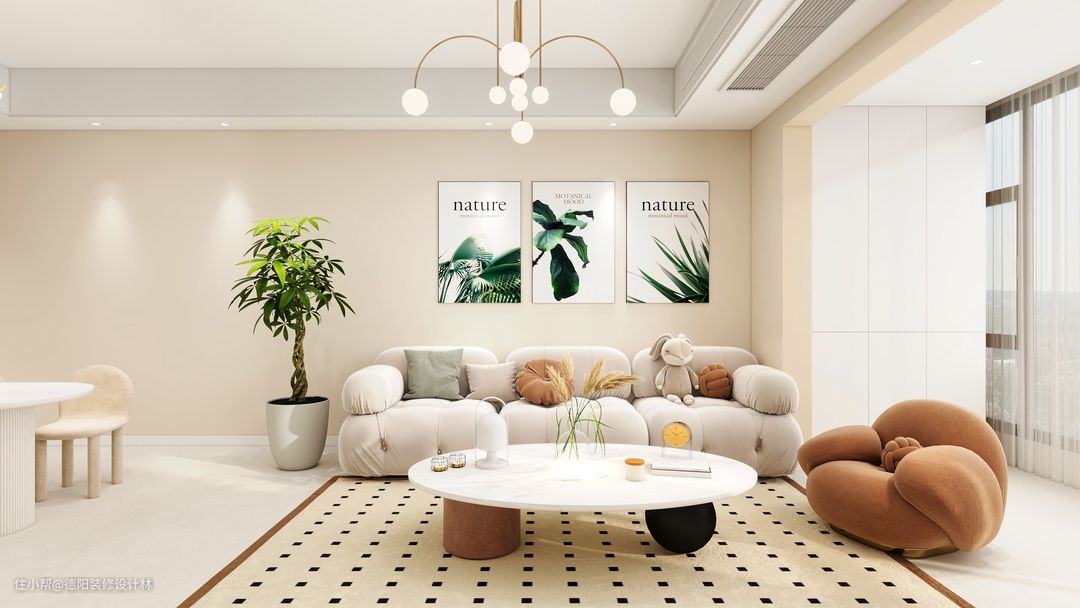 客厅以现代大方的空间 简约边顶让客厅空间显得有层次 整个客厅显得简约又大气