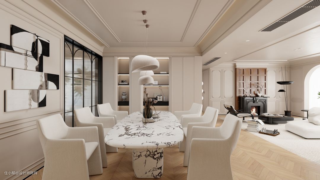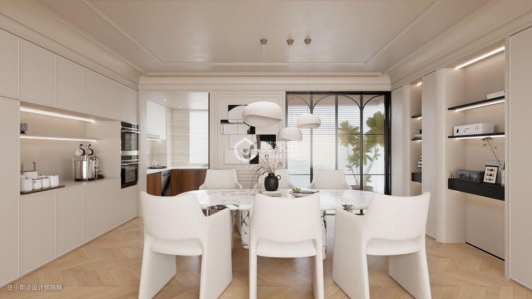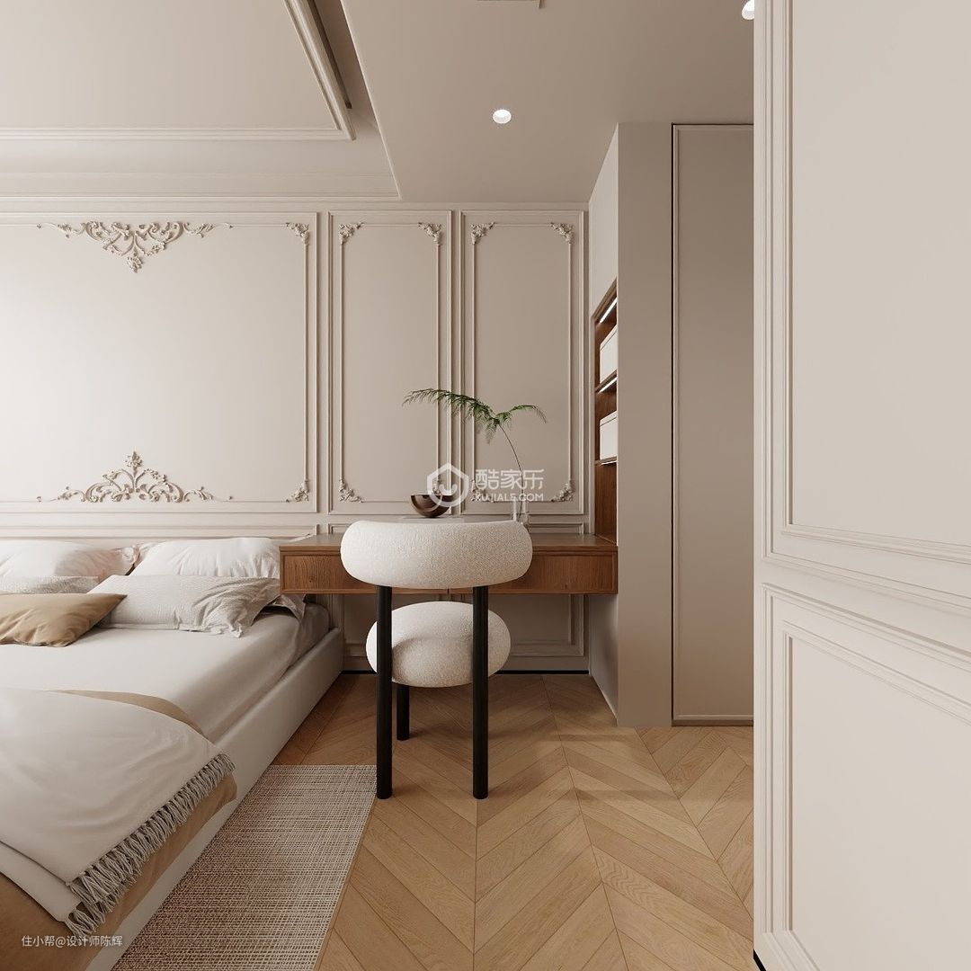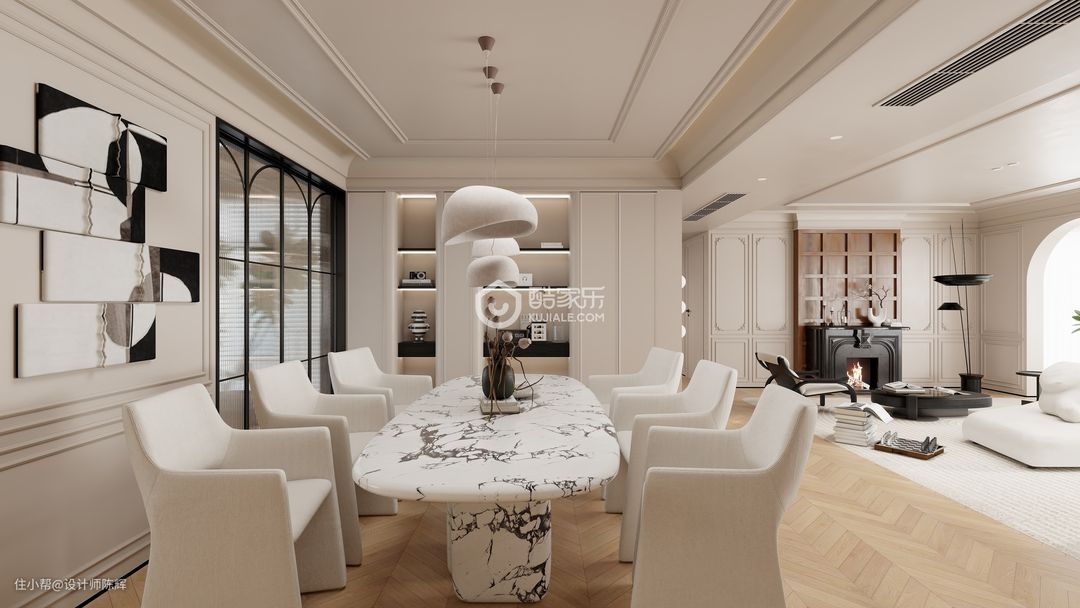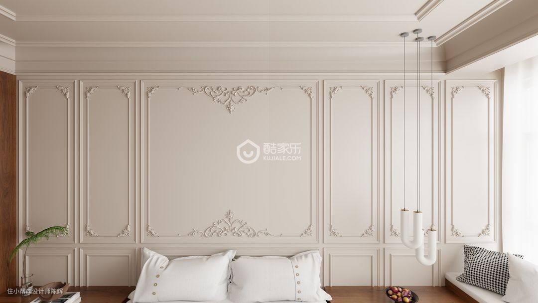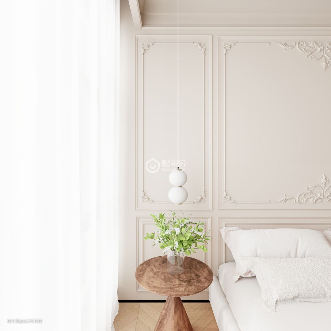 极简法式+清新浪漫+舒适自然的风格,配以舒适的现代家居 ,细致的工艺,浅色的奶油色墙面,PU线条和吊顶让家里更添一丝复古和质感,温暖的配色,营造优雅心动的空间氛围。