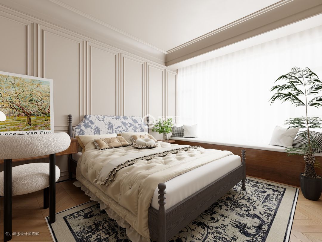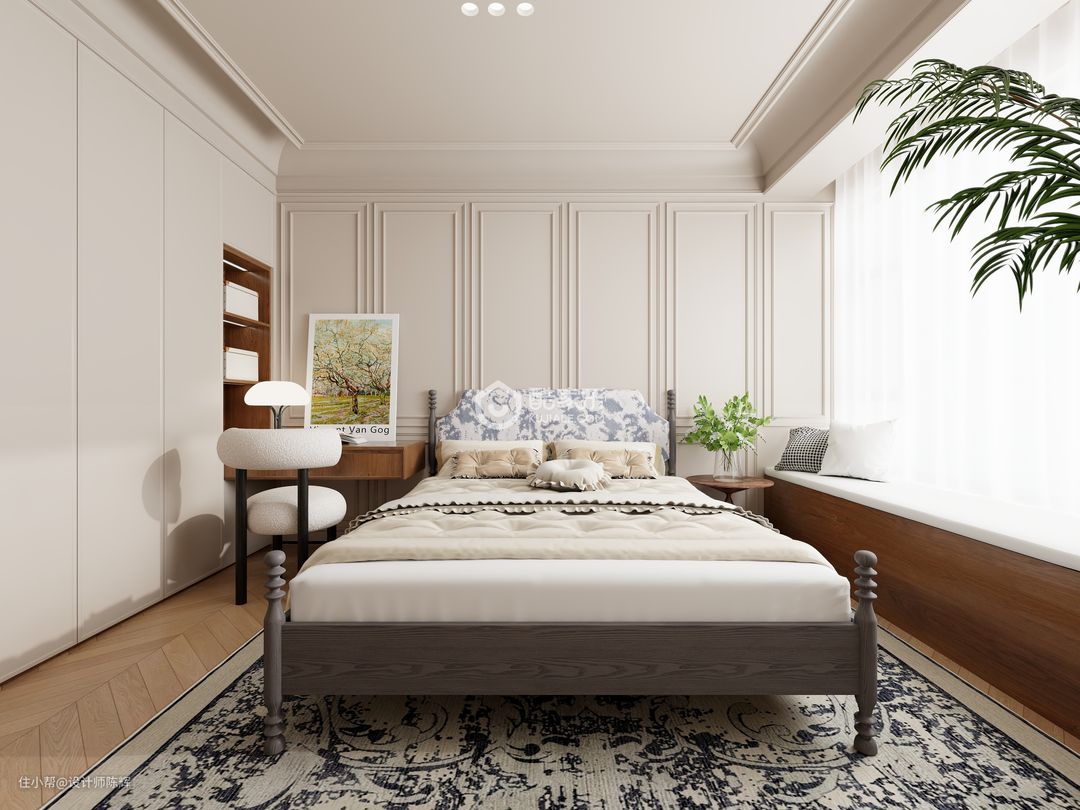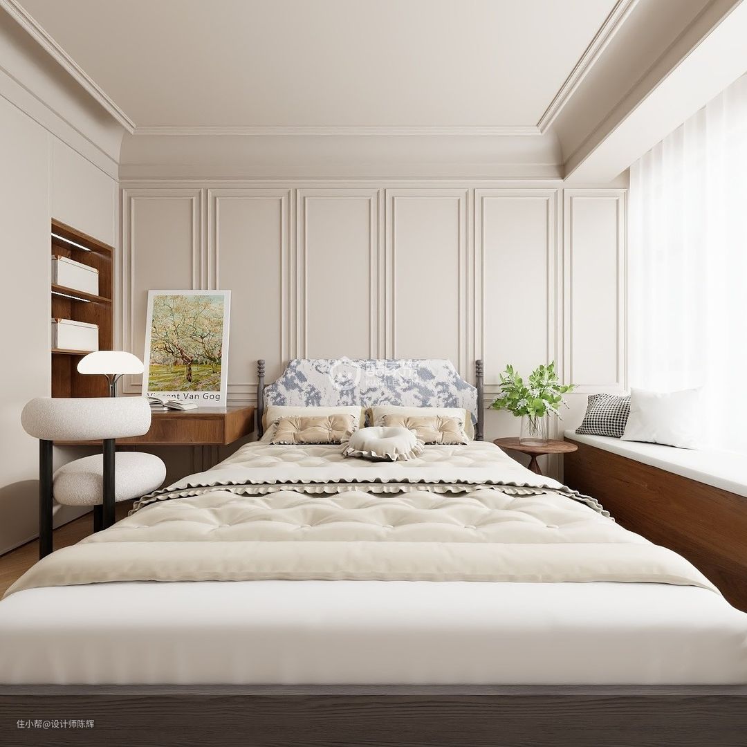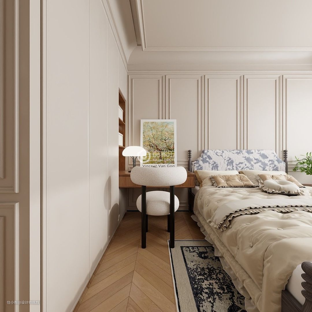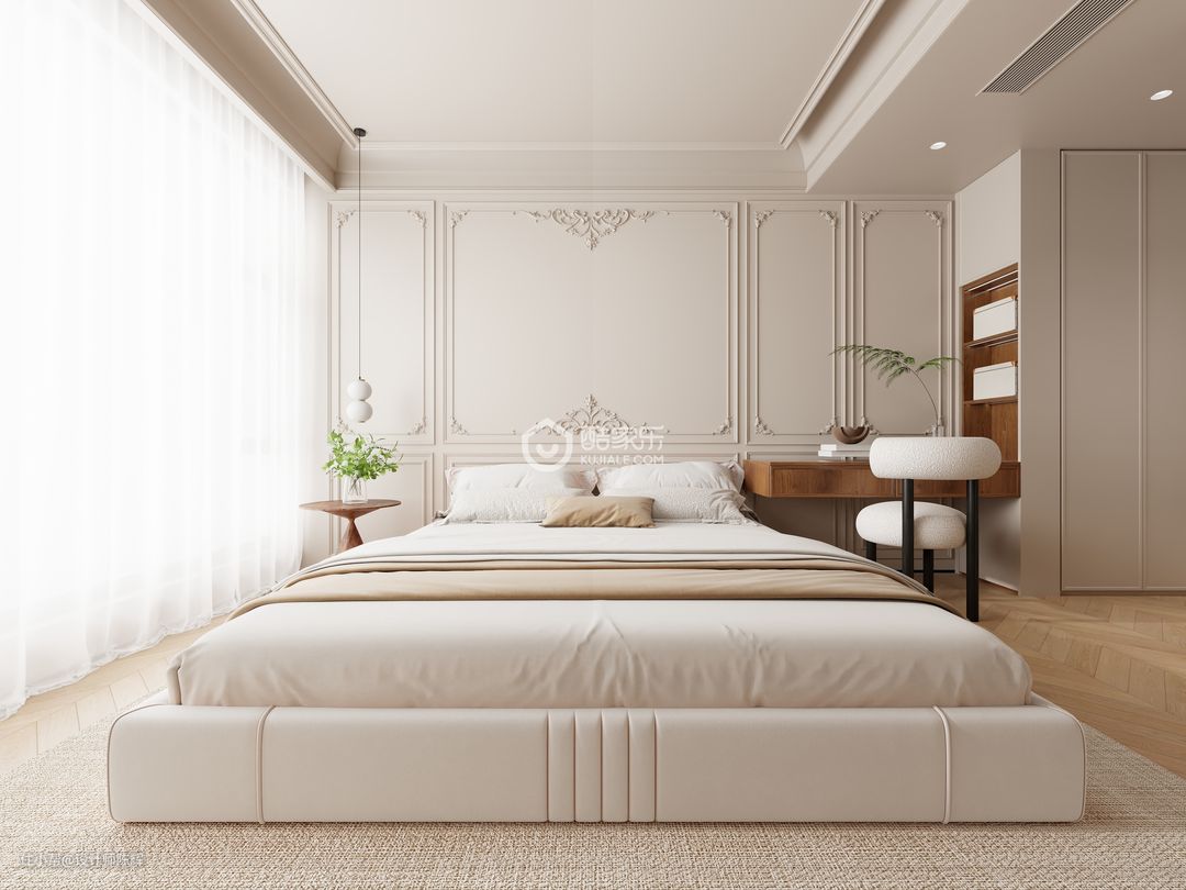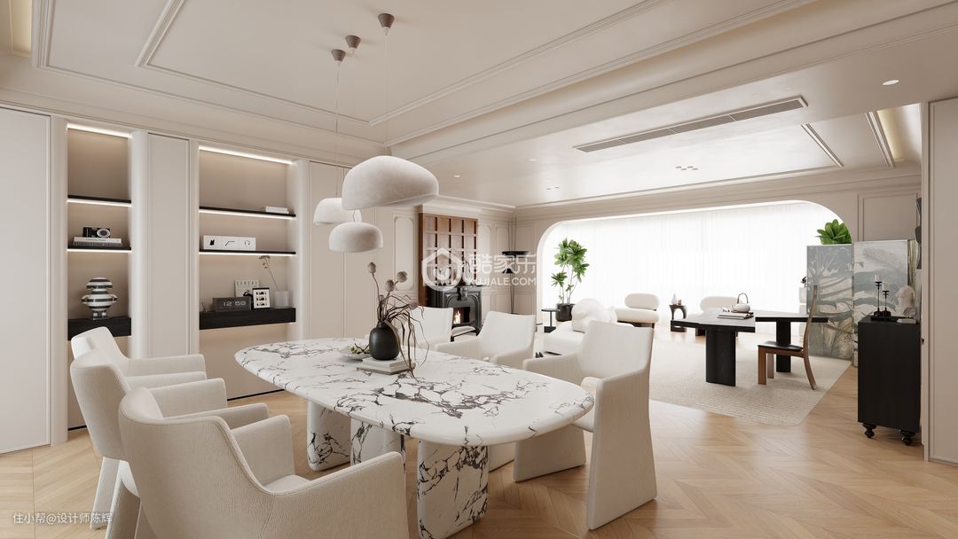 极简法式+清新浪漫+舒适自然的风格,配以舒适的现代家居 ,细致的工艺,浅色的奶油色墙面,PU线条和吊顶让家里更添一丝复古和质感,温暖的配色,营造优雅心动的空间氛围。