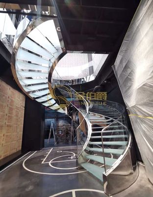 层高3000mm,做的是16+1步,步长900mm,靠墙侧做8mm单层低邦钢板,外侧用8+8mm双层低邦钢板,中间夹12mm钢化玻璃,踏步用6mm折边,上面铺灰色大理石