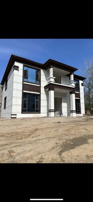 外墙是EPS构件贴的造型,费用1.2万,喷3面真石漆白色➕咖啡色费用2万 #农村自建房 #农村老家 #小蒙儿的家