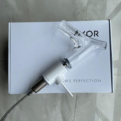 【境雨】境雨的出现属于产品升级完成的固定系列成品,在汉斯格雅新出品的高端系列中,无论明装、暗装,顶喷、手持上均有运用。具体到手持花洒头,它一改飞雨、沄雨的120尺寸,采用了130(直径13厘米)尺寸,盘面也第一次使用了金属氧化铝,所有的孔洞均采用境雨出水孔,一个大孔分为4个细孔,出水更加均衡细腻。也是三种模式:境雨、强劲境雨、单股。因为所有孔洞均为境雨细化孔洞,对水质有一定要求,建议配套净水系统,起码有前置。选择上,有两种选择:镀铬原色、白色。无论哪种颜色,盘面均为黑色,只是边框和后背整体颜色不同。价格上,境雨单独手持花洒头,相比境雨的暗装顶喷,实属良心价,能用较低的价格体验最新的淋浴技术,也是汉斯格雅的诚意所在。