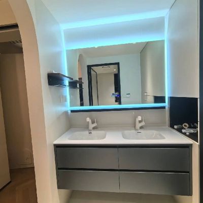 阳台就要这么装!材料选的是18厘厚的铝蜂窝,可以防水防潮防晒,阳台没封也不用担心柜体会被风吹日晒腐坏了。